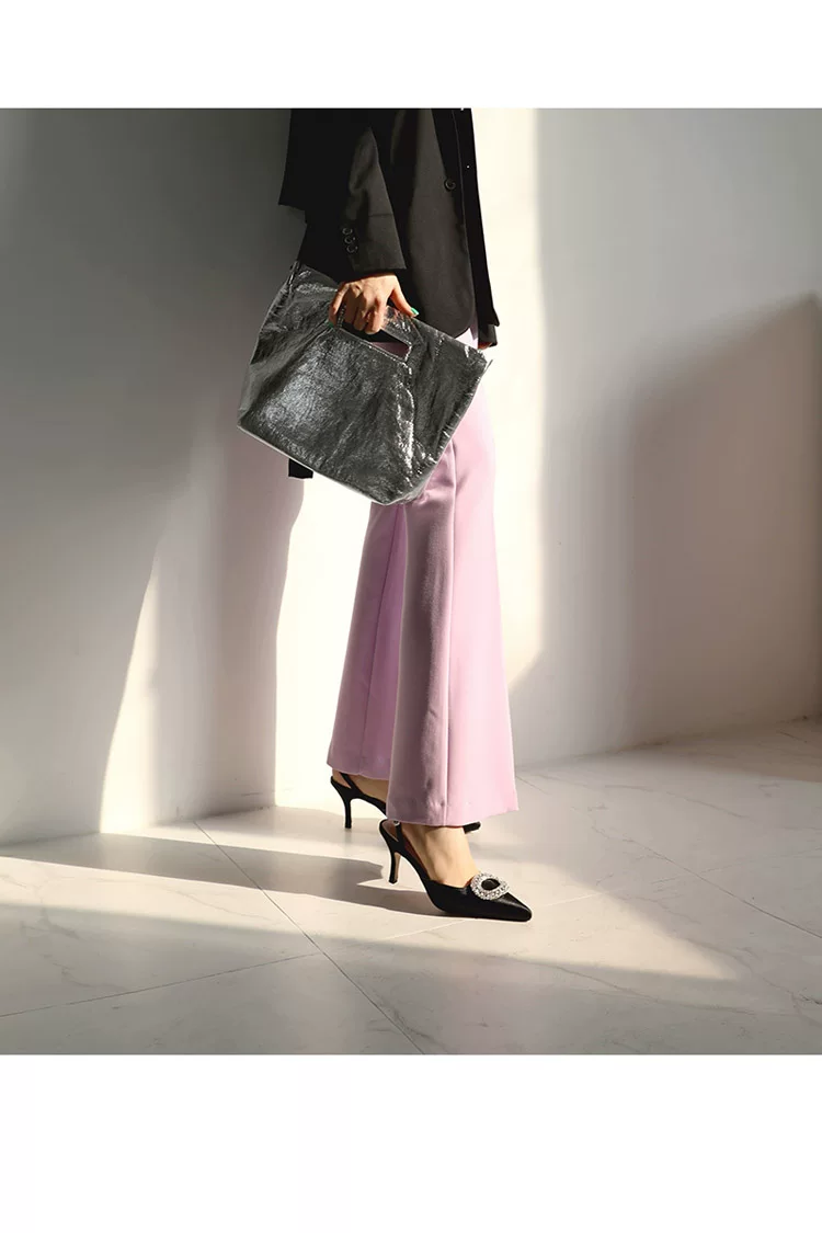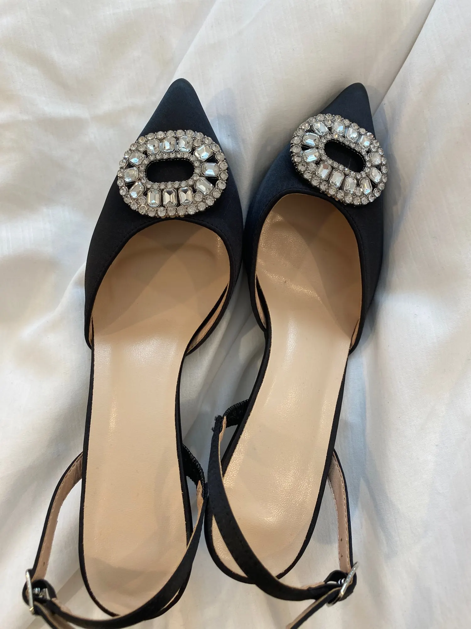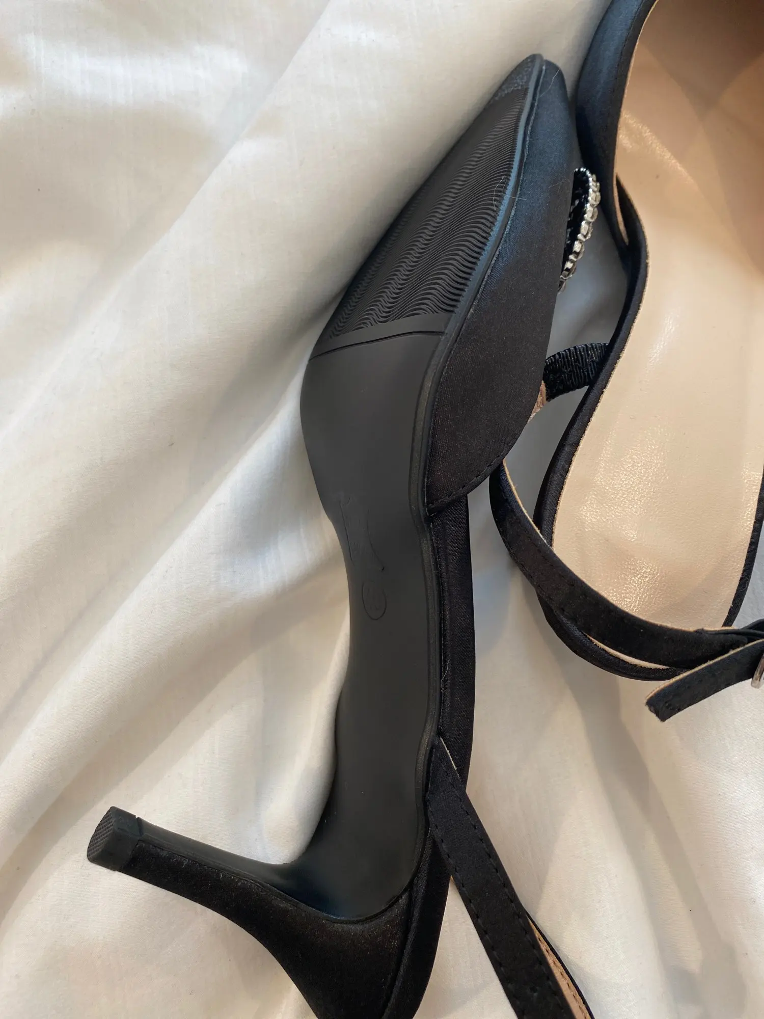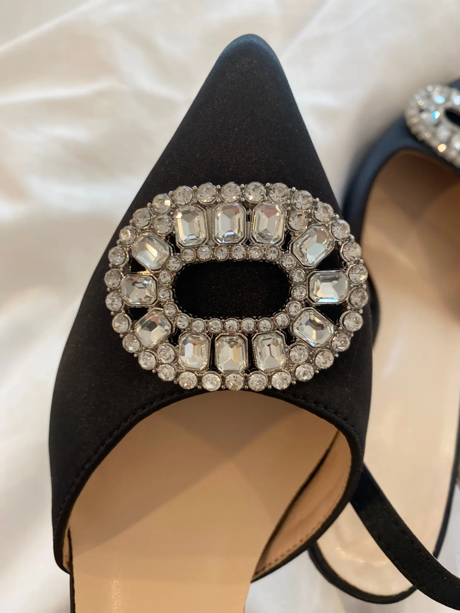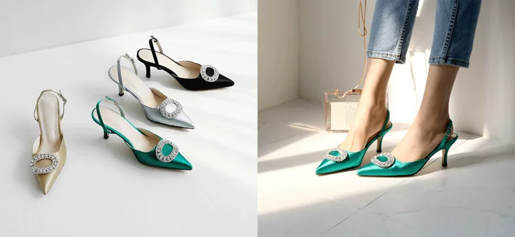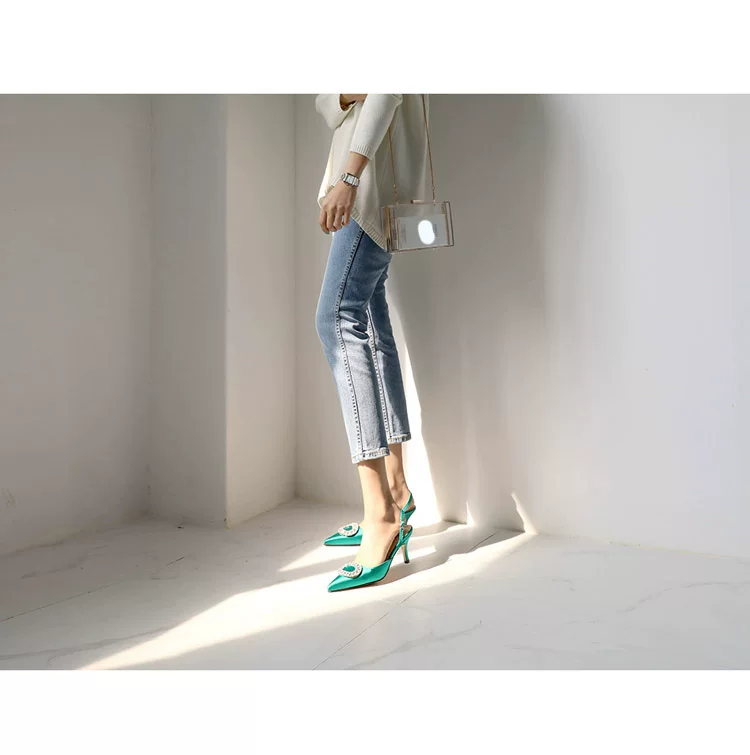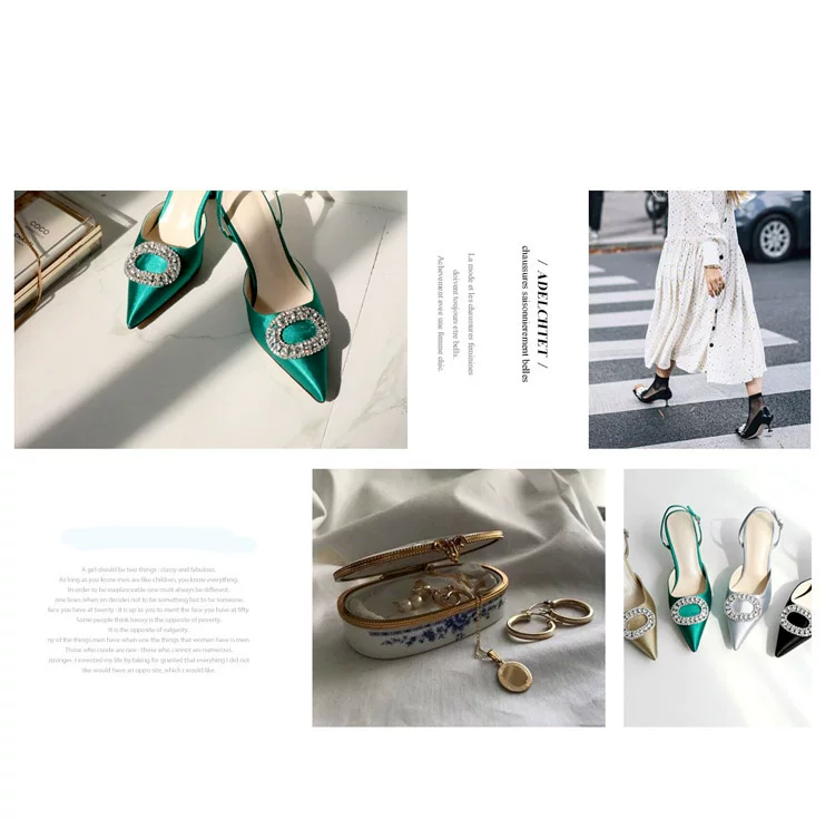 Босоножки женские атласные, с острым носком, на высоком каблуке, с пряжкой