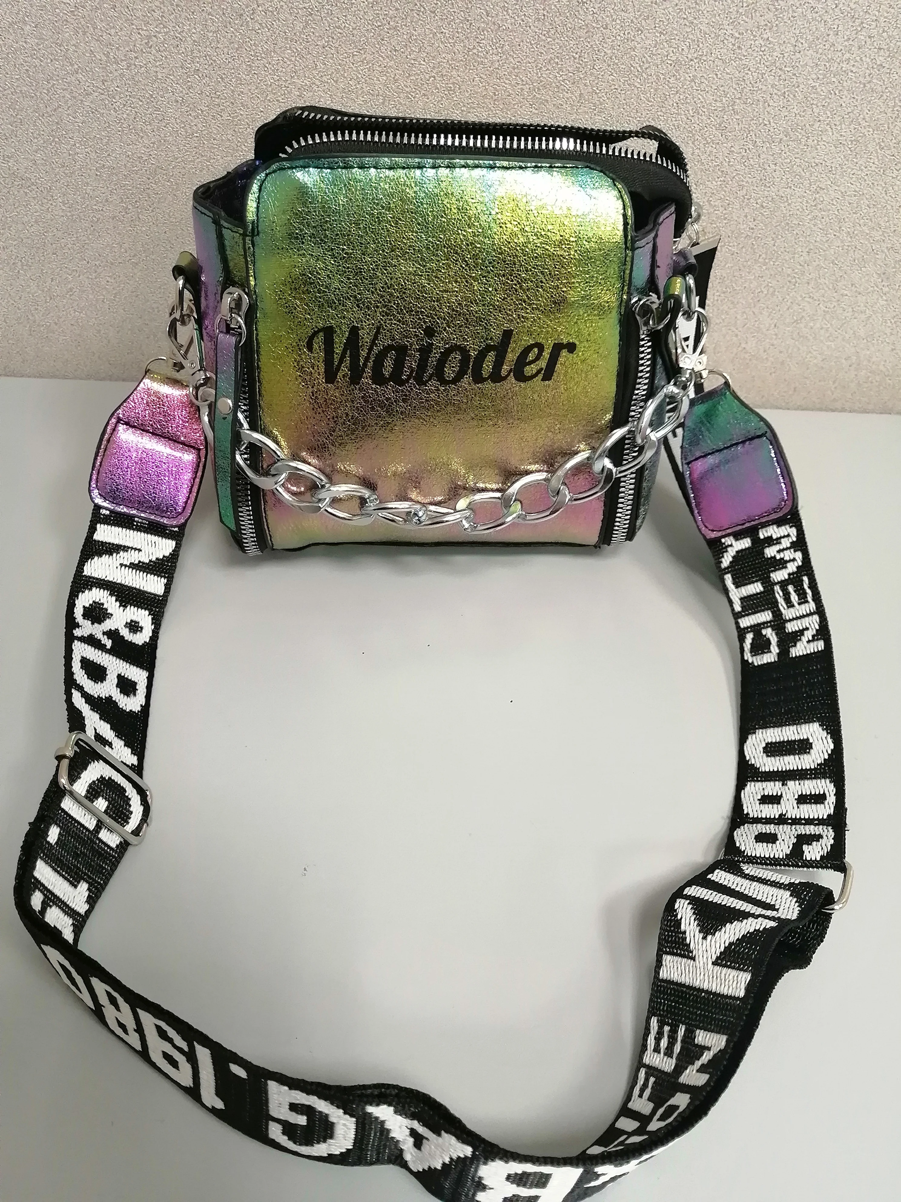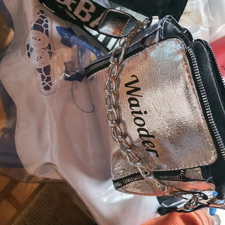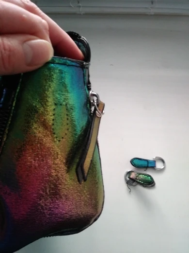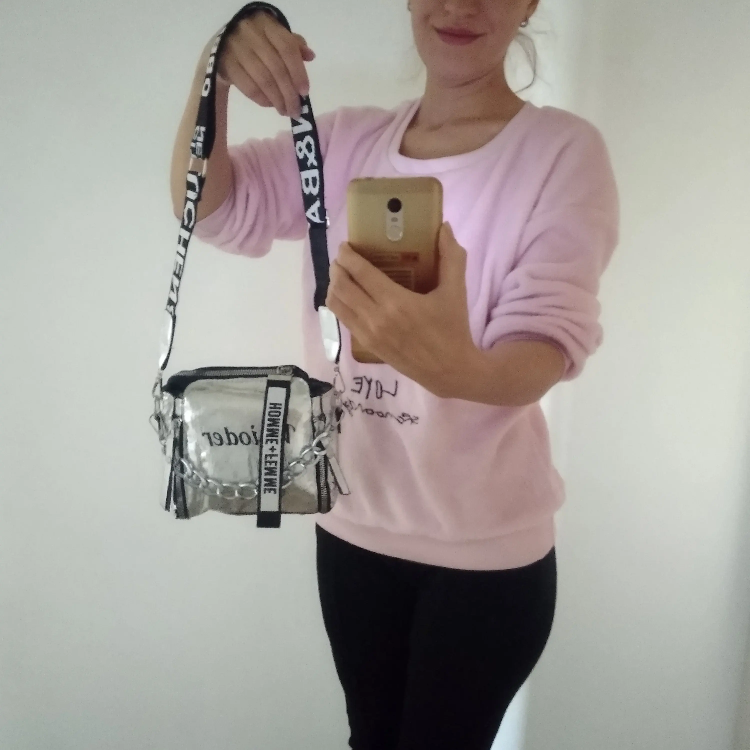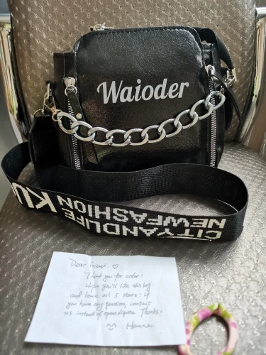 сумочка меньше чем я ожидала, но довольно вместительная, есть маленький кармашек внутри, на солнце безумно красиво переливается , продавец положил резинки и записку мелочь а приятно