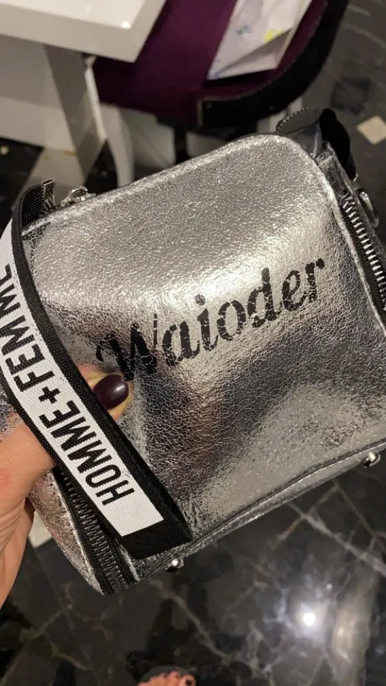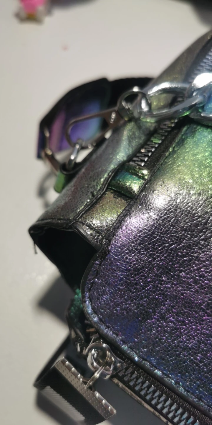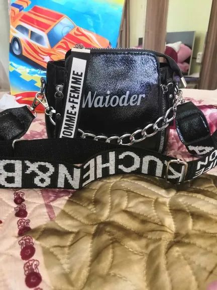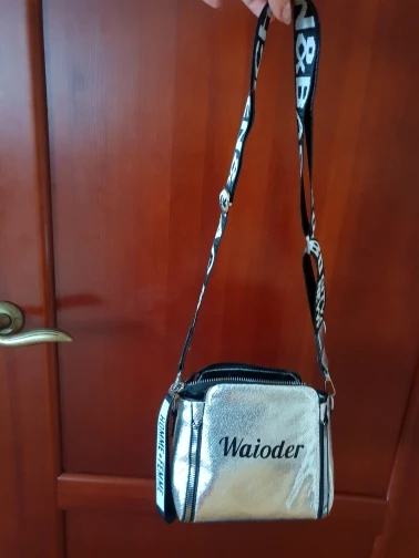 Сумку покупала для ребёнка. На фото выглядит лучше) сумка сшита из очень тонкого материала, не держит форму. Кривые строчки и торчать нитки. Ремешки, молнии хорошие. Из далека выглядит красиво) дочка вполне довольна. Я ожидала, что сумка будет поплотнее, будет держать форму. Если положить один телефон, дно сумки провисает надо ещё чем нибудь набить.
