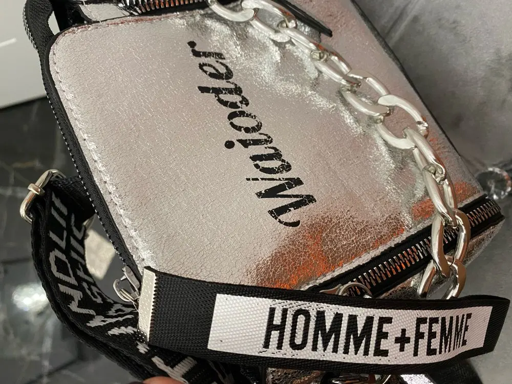 пришла быстро,за 2 недели.ничем не пахнет,внутри сумки надутый пакет,так что ни одного залома нет.подкладка внутри тоньше некуда-даже просвечивает нижние швы.буквы все на месте,фурнитура в норме.единственный минус это короткая ручка-цепочка:прям на 1-2 звена побольше бы для свободы провисания цепи и было бы шикарно,а так поднимаешь сумку за эту цепочку и сумку перекашивает назад.