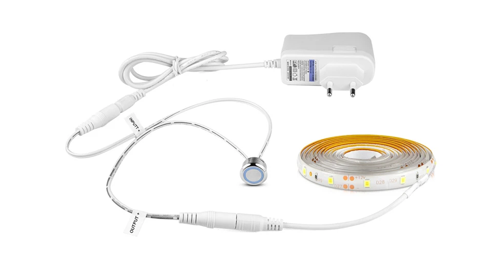 Тип: Светодиодная лента 12 В 2835 с сенсорным переключателемТип светодиодов: 2835SMDКоличество светодиодов: 60 светодиодов/мКласс водонепроницаемости: IP65Длина: 1 м/2 м/3 м/4 м/5 мСветильник Цвет: белый/теплый белыйЦветовая температура: белый (6000k-6500K); Теплый белый (2700K-3500K)Яркость: плавная регулировка, Длительное нажатие на переключатель для изменения яркостиИсточник питания: адаптер питания 2AИдея для шкафа, шкафа, лестницы, кухни, украшения дома