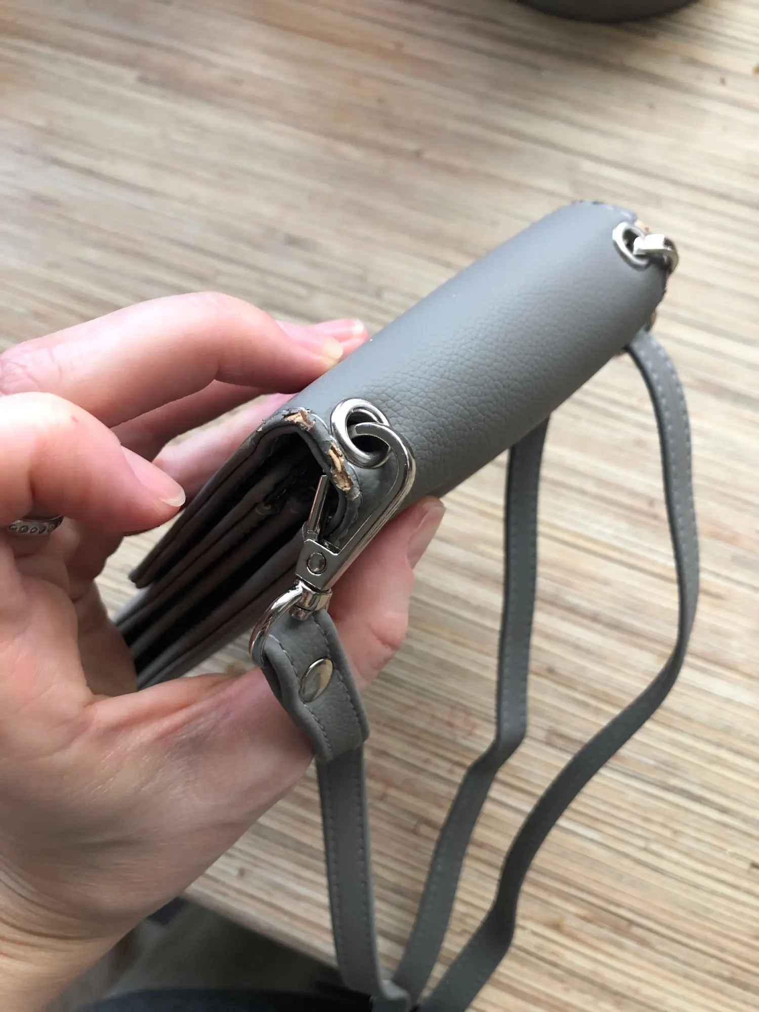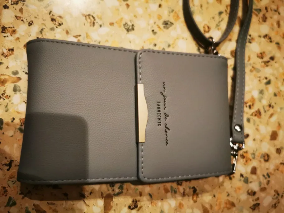 Да ладно?! Доставка в Москву 4 дня в ПВЗ Пятёрочка. Вот это скорость! Сумочка очень приятная, цвет серо-голубой. Не яркий как и хотела. Посмотрим как в носке, в отзывах пишут быстро обтераются края. Телефон уместился без проблем (Huawei p30 pro). В соседнее отделение помещаются карточки и купюры, но с ключами уже будет сложнее. Углы донышка не прошиты, для мелочи не подойдет.