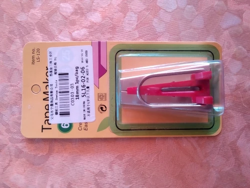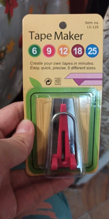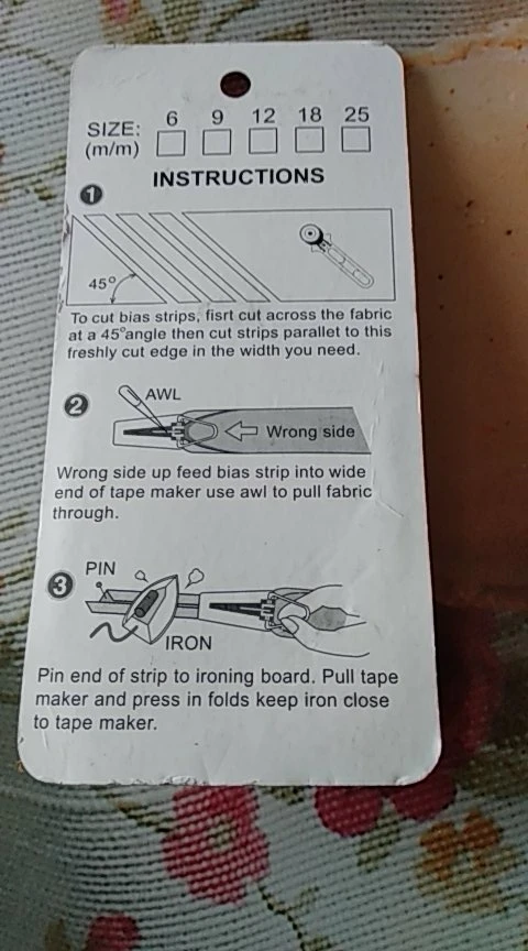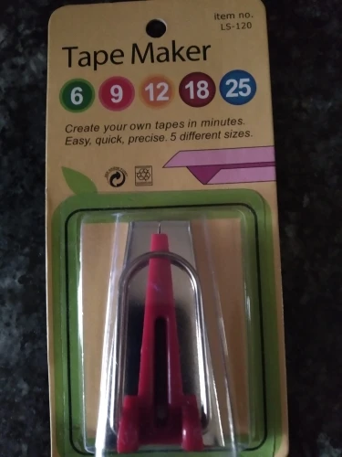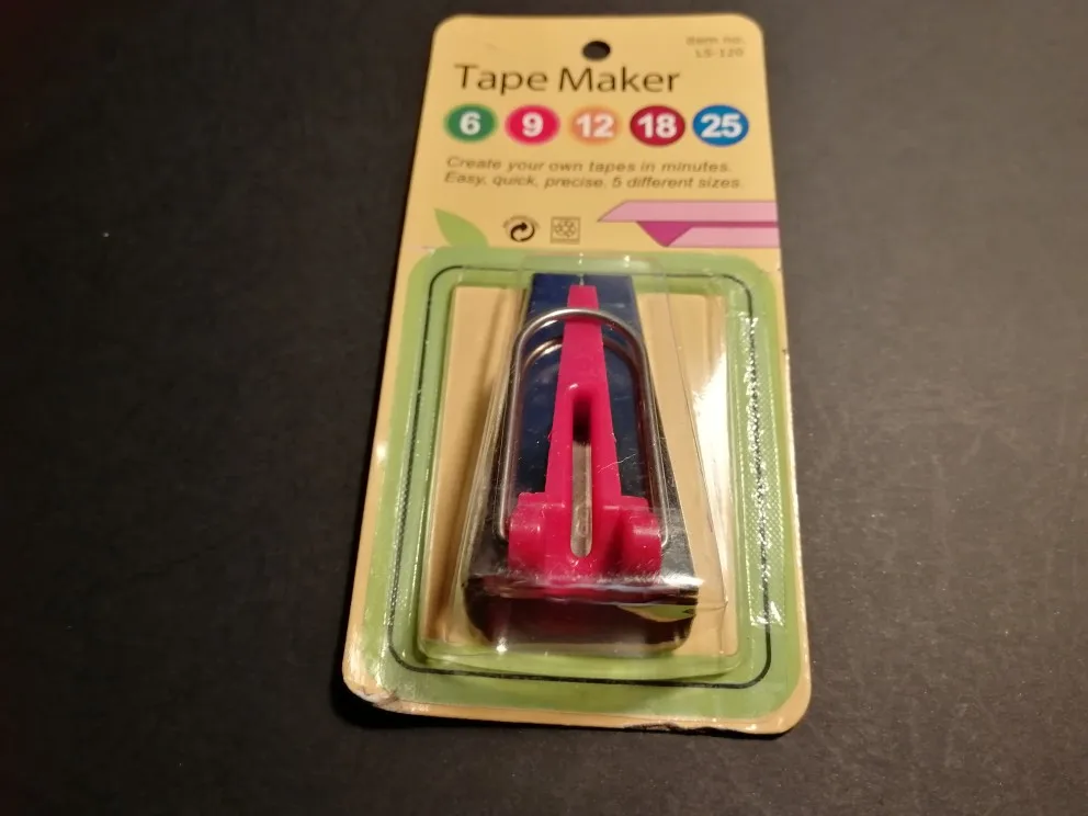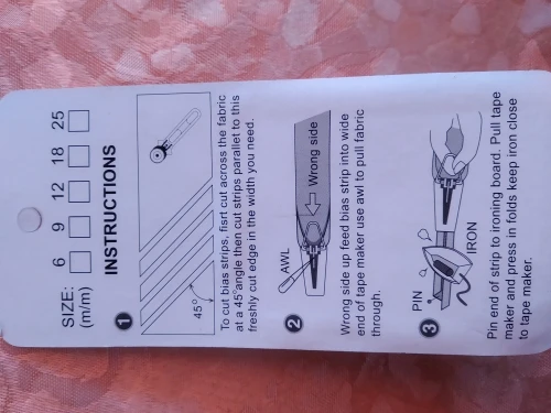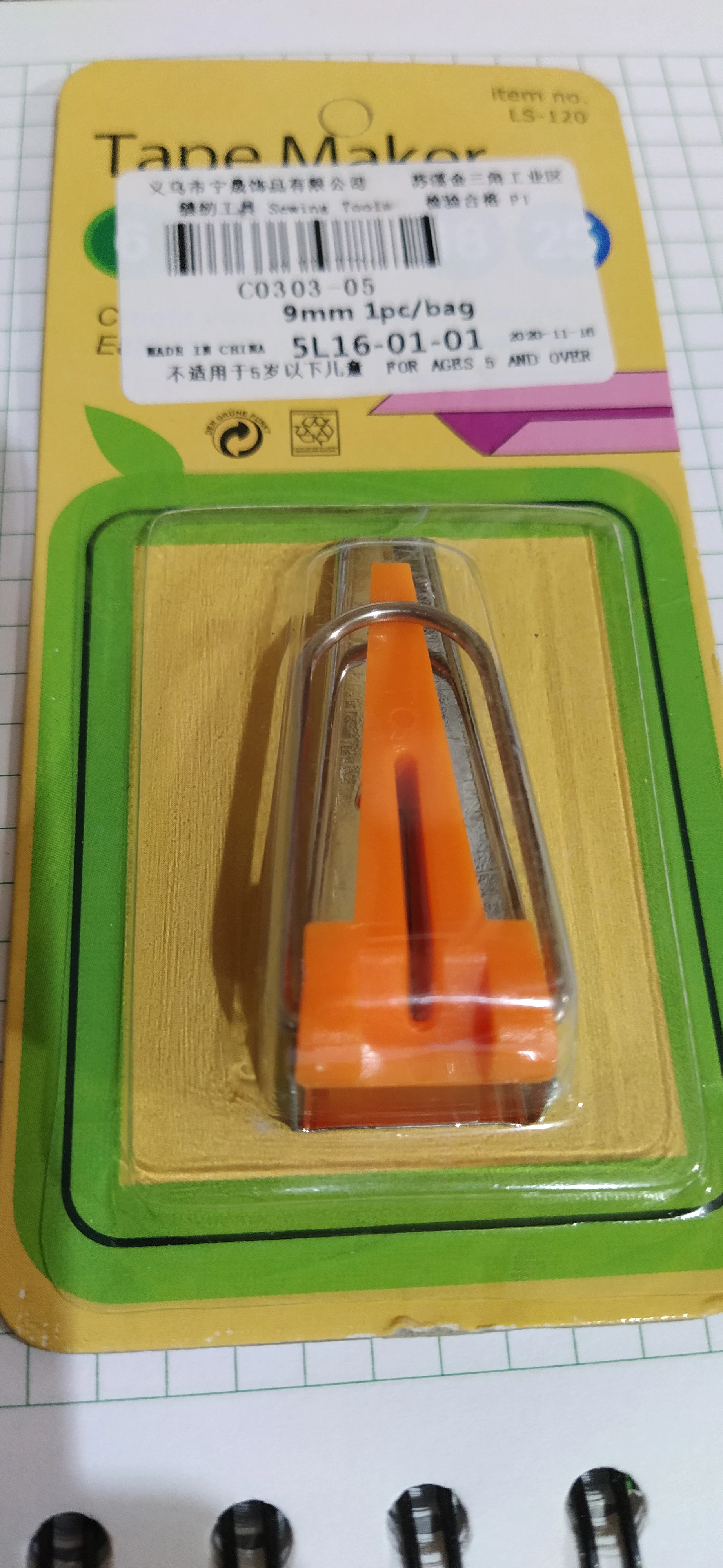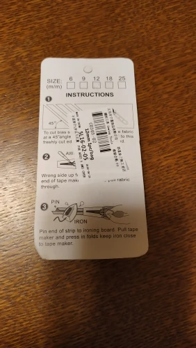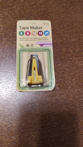 Очень удобная штучка для косой бейки.Товар сделан качественно, в хорошей упаковке.Все соответствует описанию.Ширина на выходе 18 мм.Доставка около месяца.