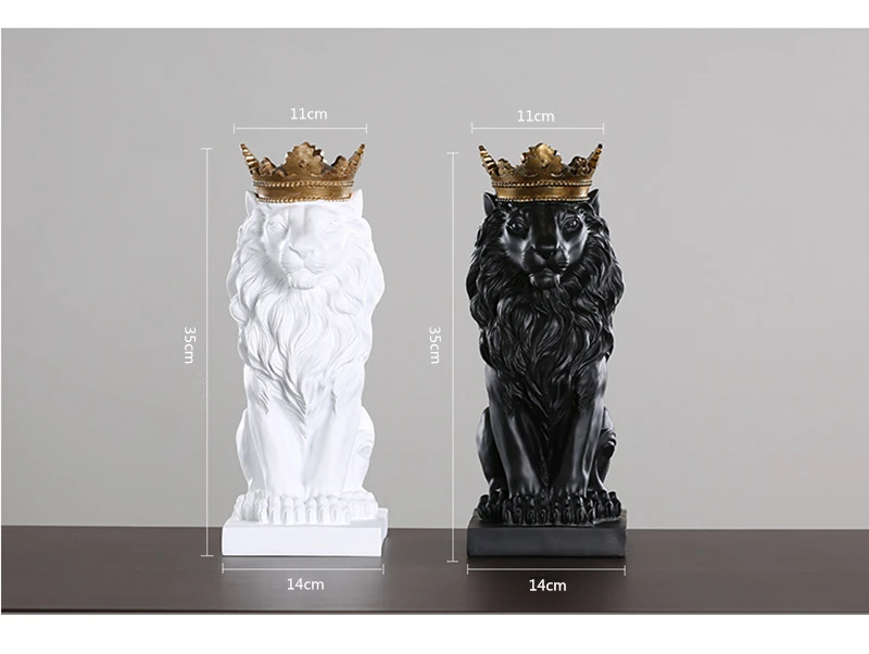 4 цвета творческая Золотая Корона Статуя Льва Современная смола черныйбелый животных фигурка украшения дома настольные ремесла скульптура