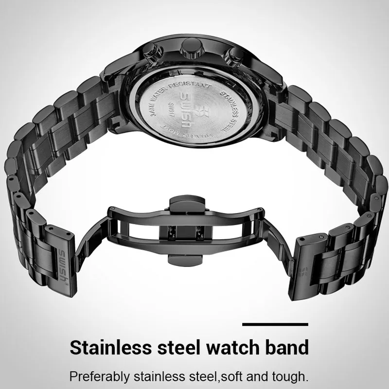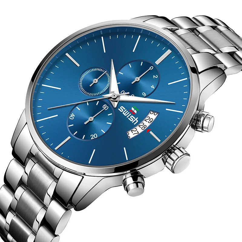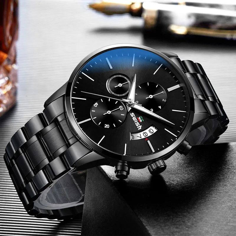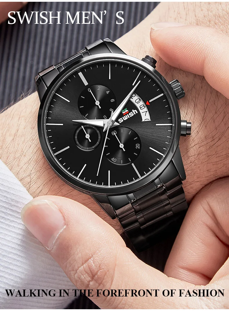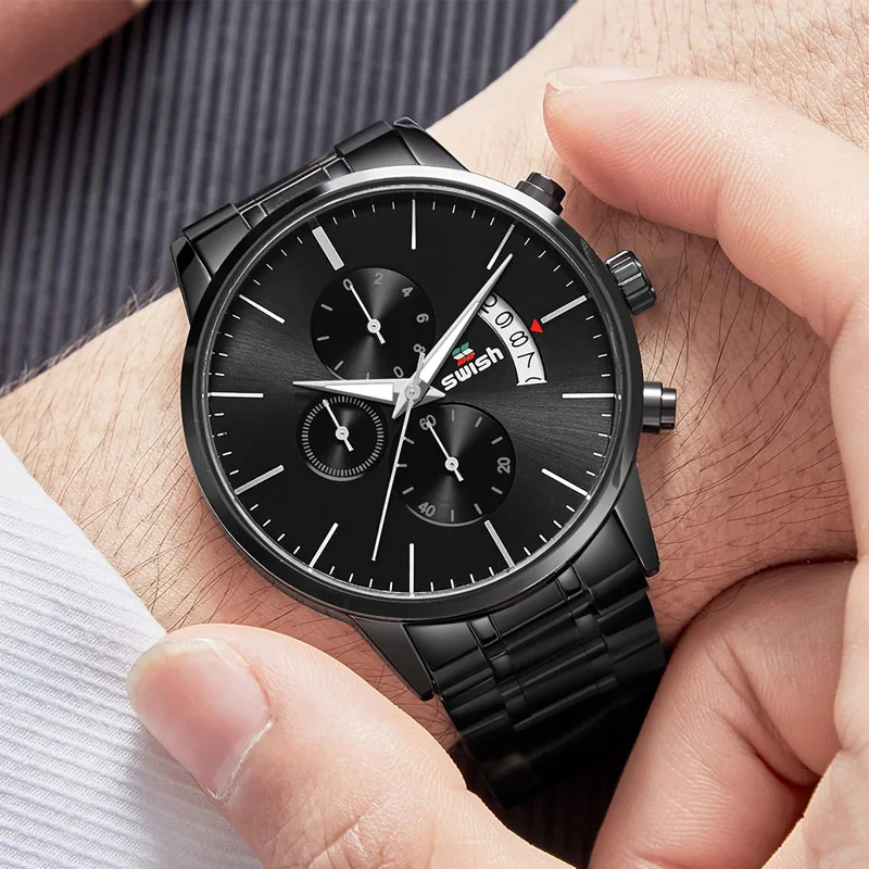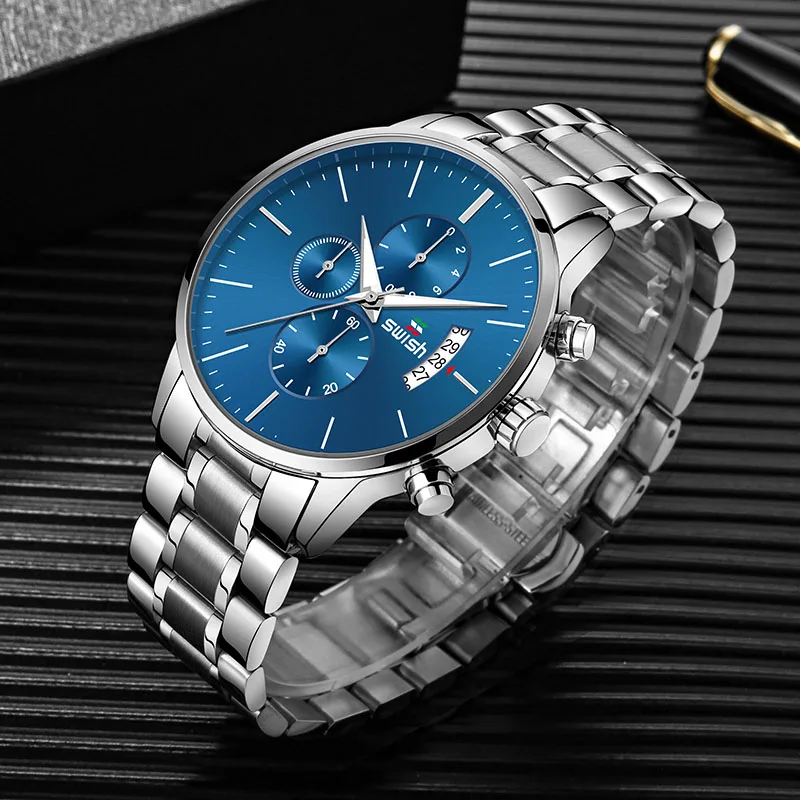 Часы наручные SWISH Мужские кварцевые, спортивные водонепроницаемые брендовые люксовые, из нержавеющей стали, 2022