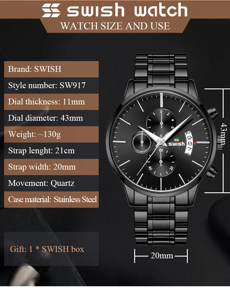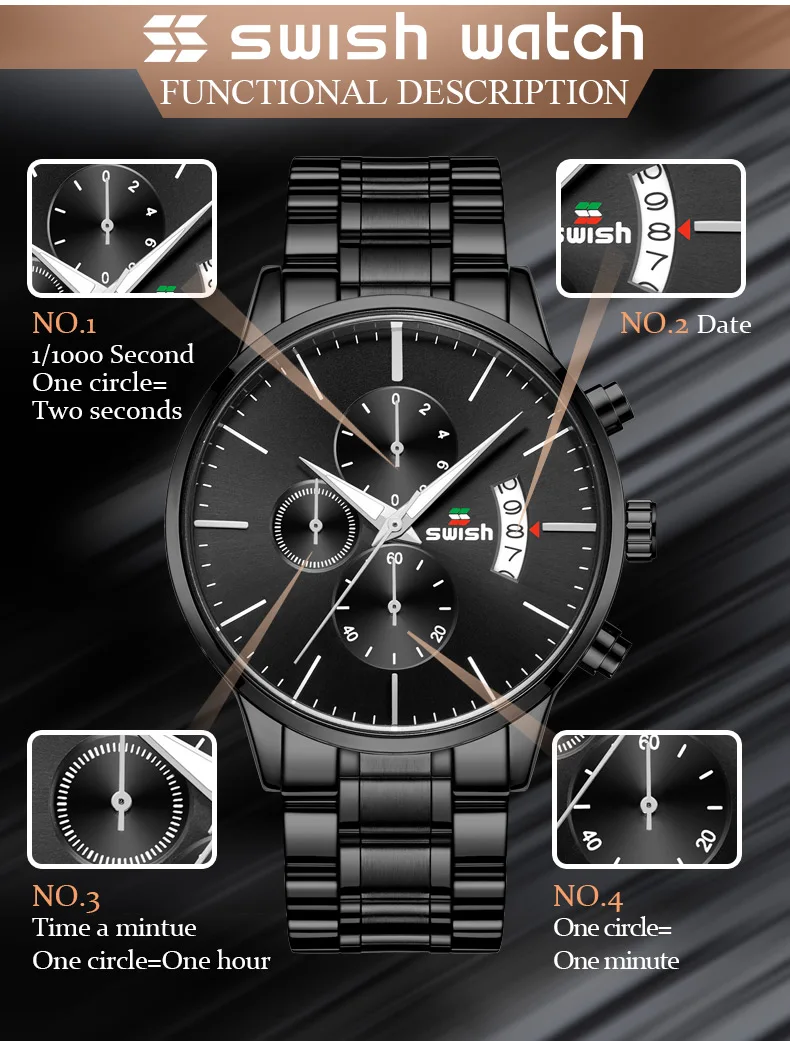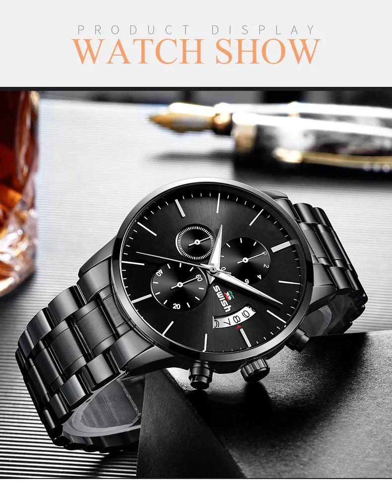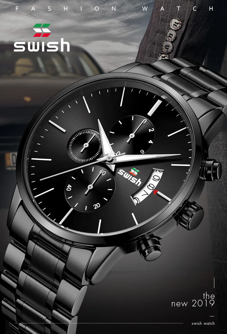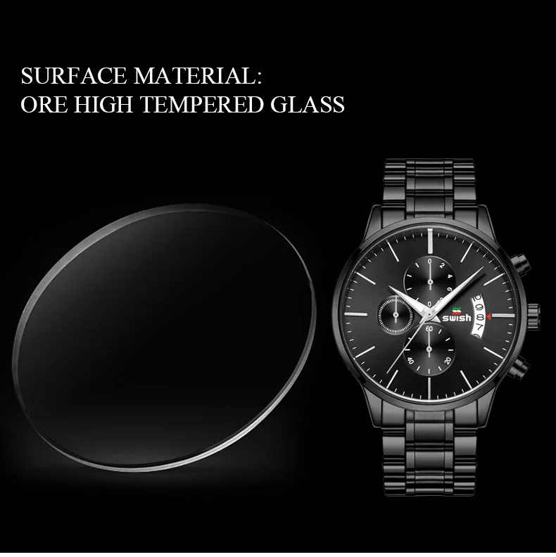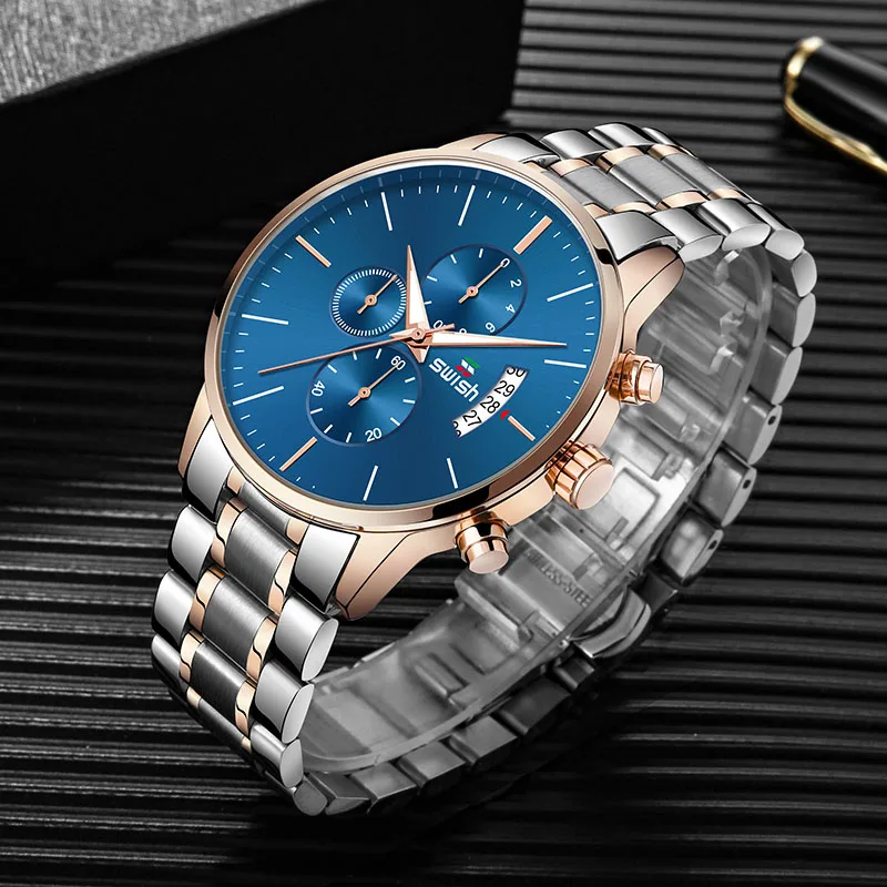 Часы наручные SWISH Мужские кварцевые, спортивные водонепроницаемые брендовые люксовые, из нержавеющей стали, 2022