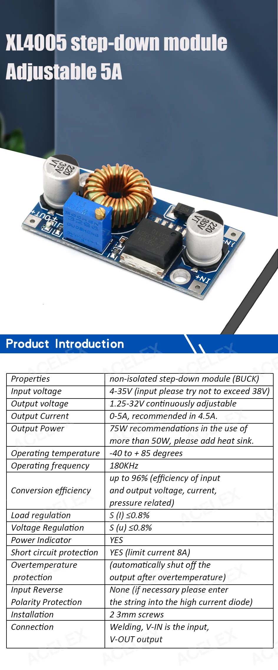 XL4005 DSN5000 Beyond LM2596 DC-DC Регулируемый понижающий модуль питания 5A, большой ток 5A большой мощности