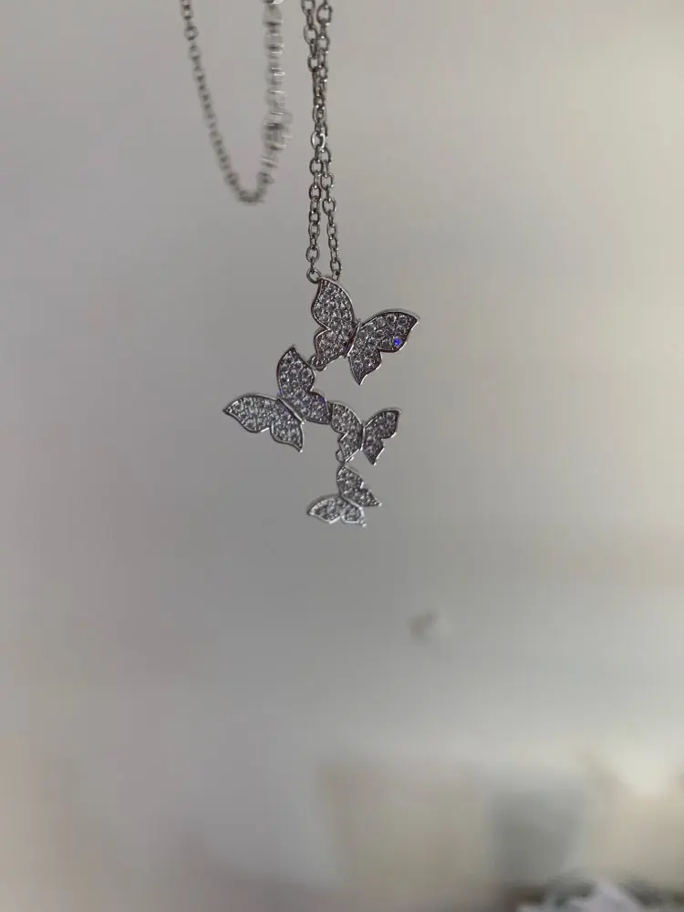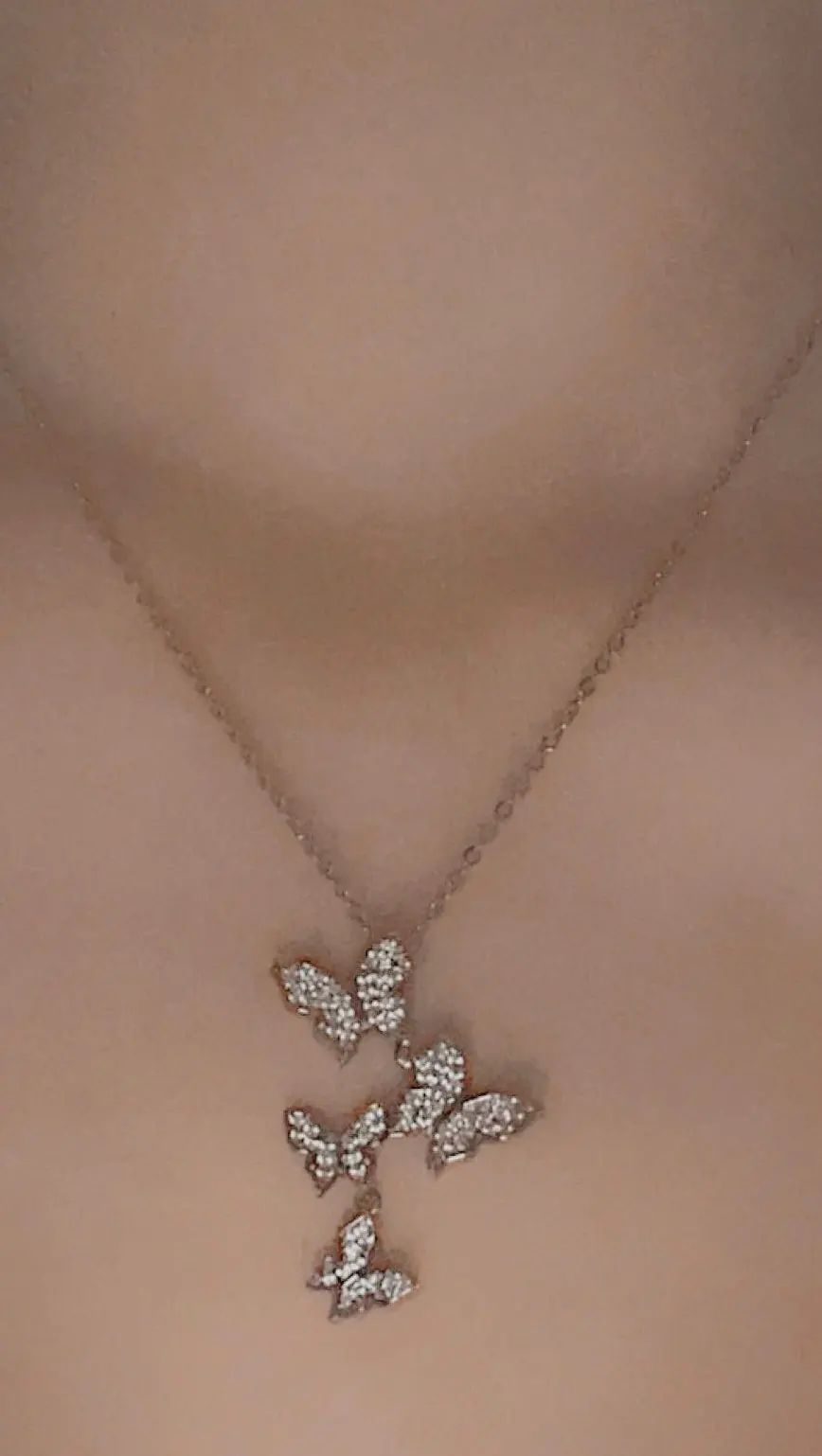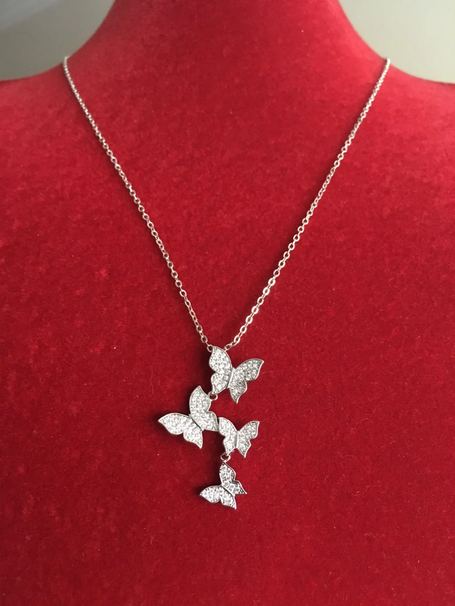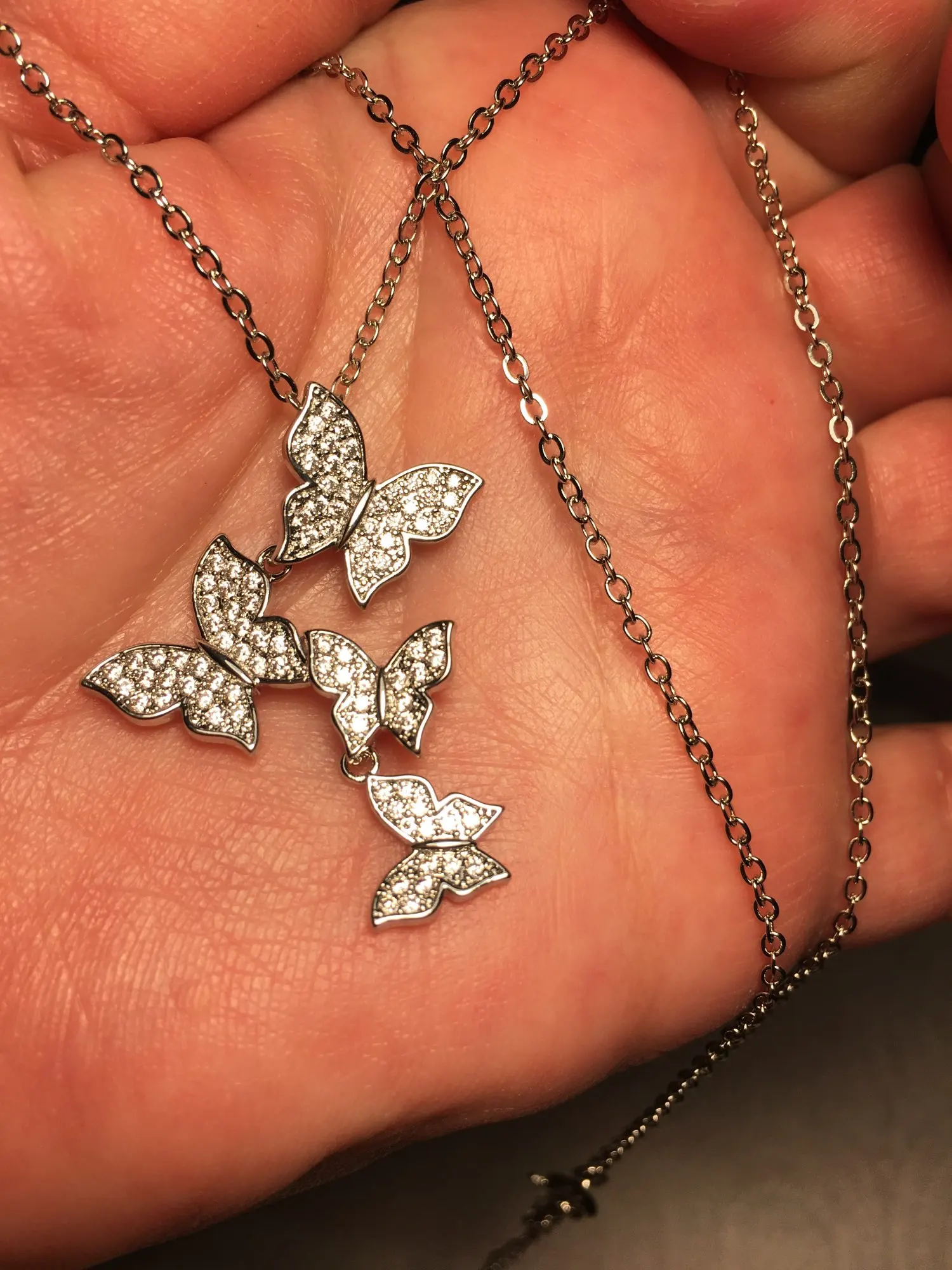 Трендовые очаровательные сверкающие ожерелья с кулоном из микро циркония с четырьмя бабочками для женщин, подарок, чокер, ювелирные изделия SAN86