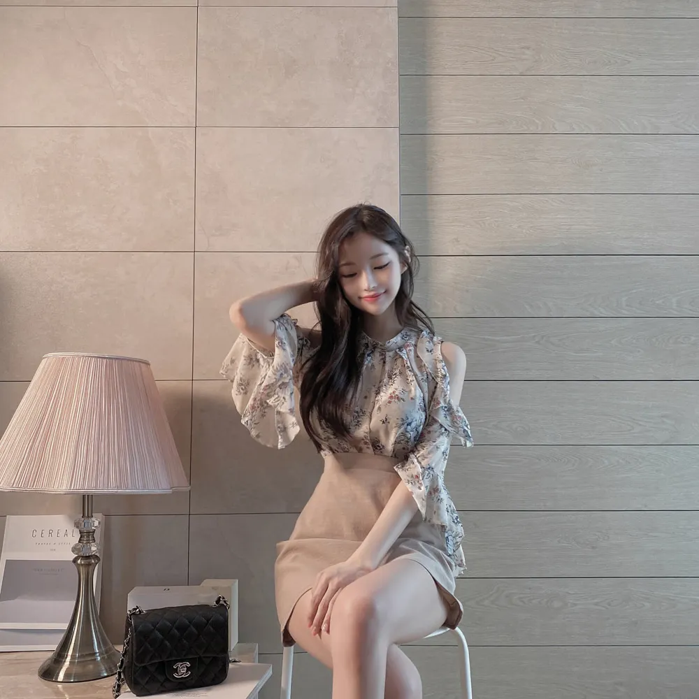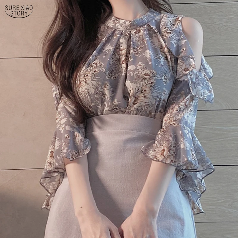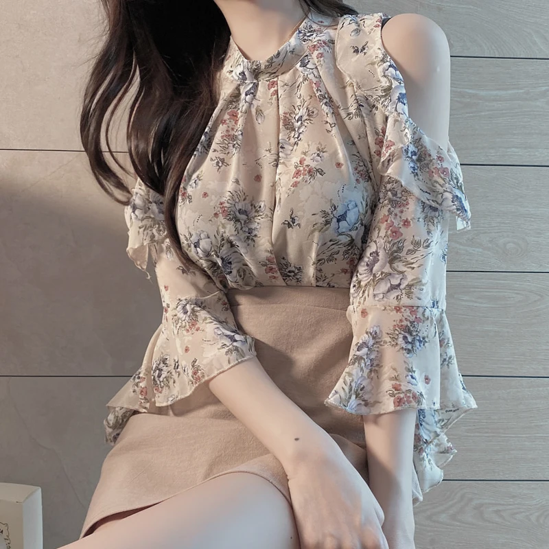 Летнее платье с цветочным рисунком шифоновая рубашка для женщин 2021 короткий рукав с открытым плечом блуза пуловер свободного покроя женская одежда Blusas Mujer De Moda 9930