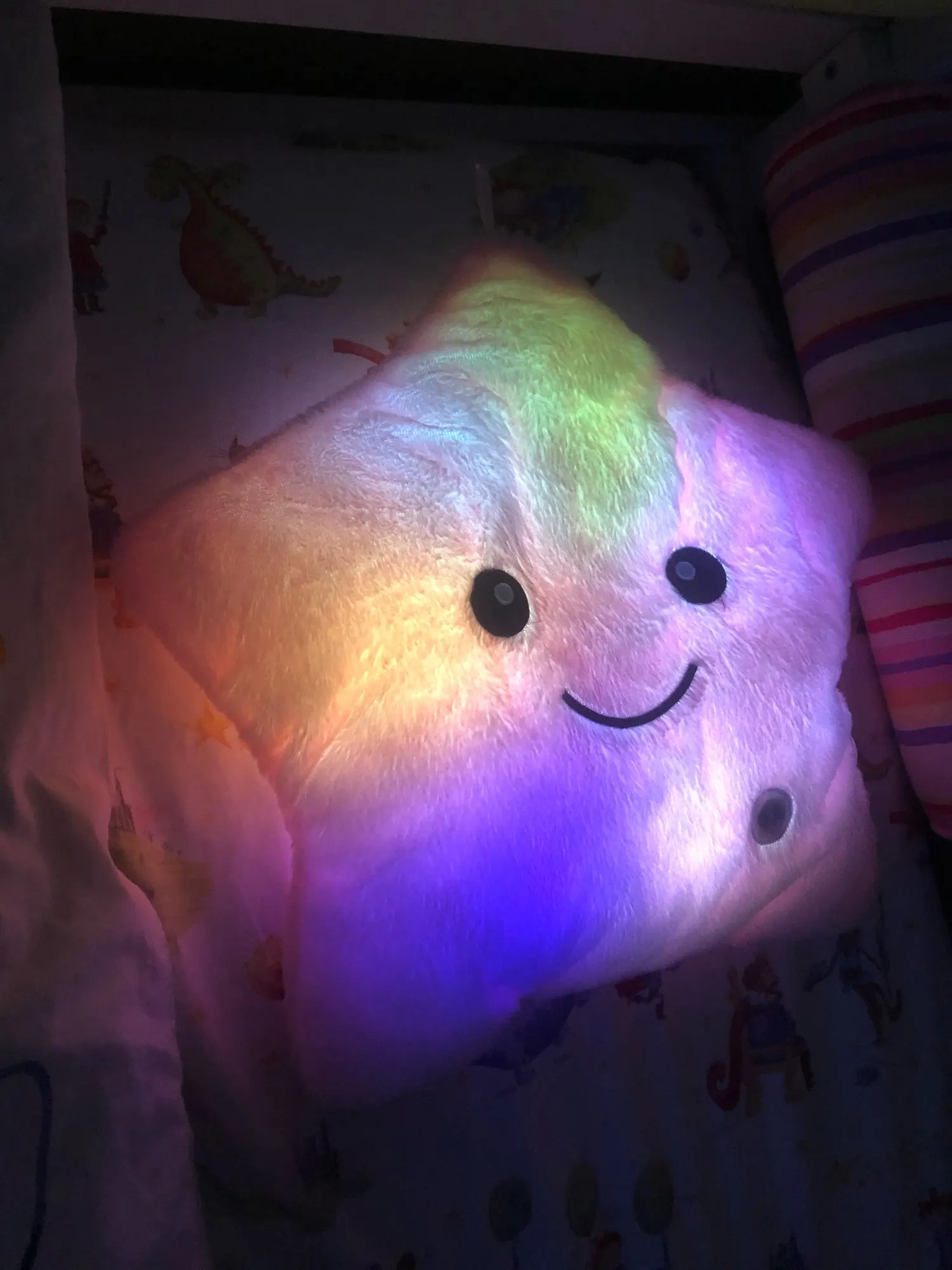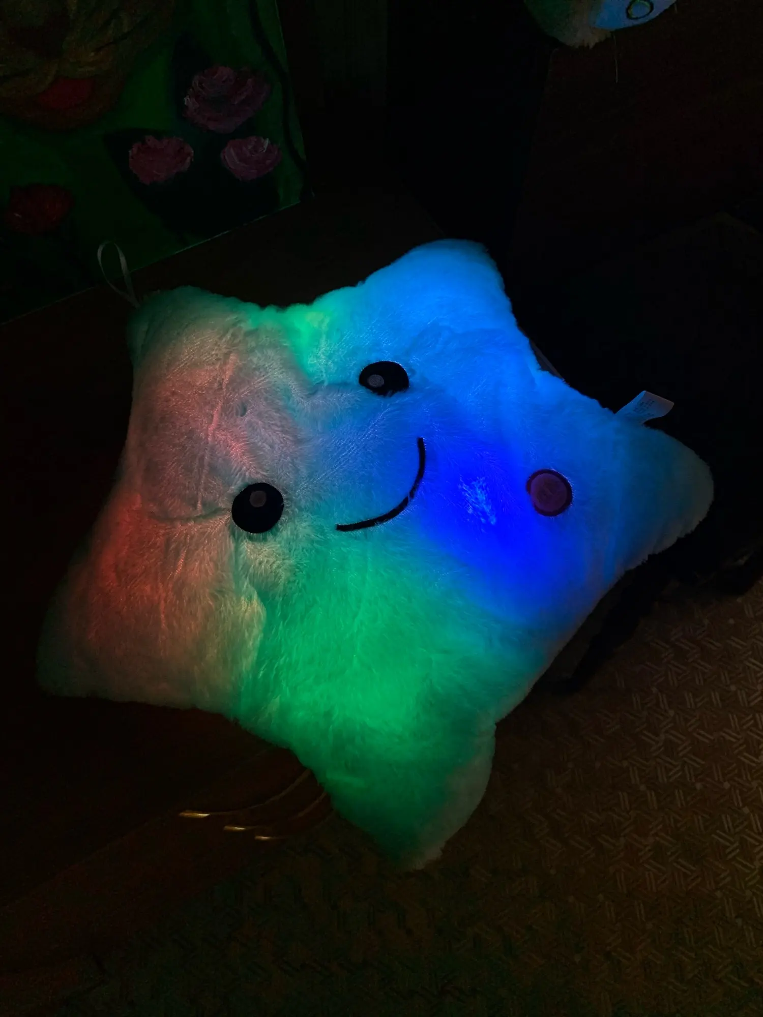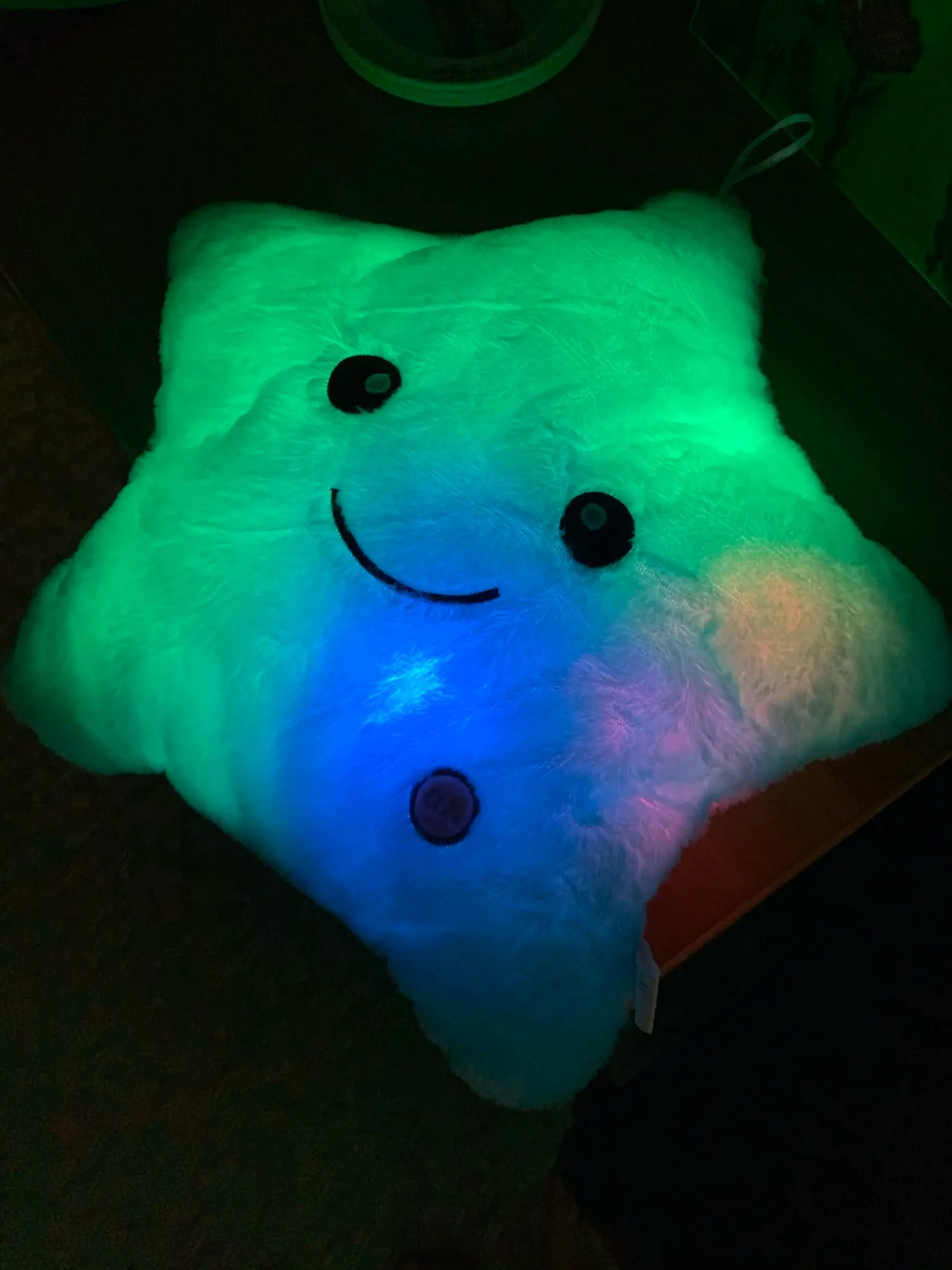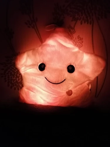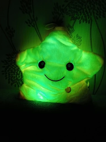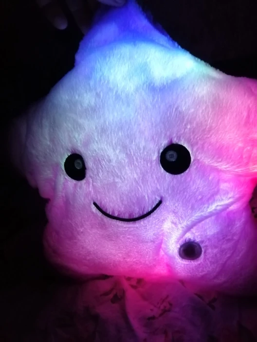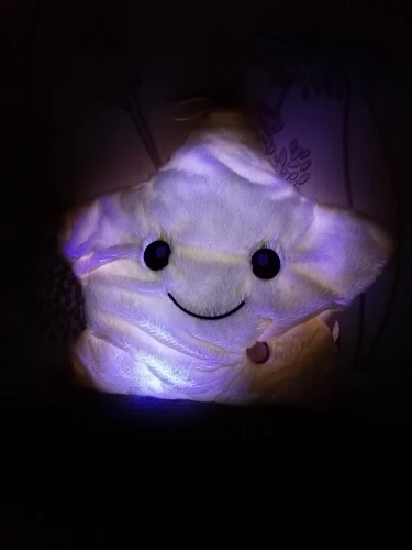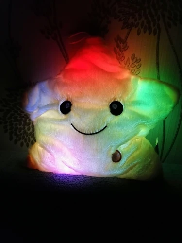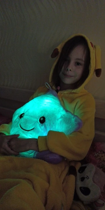 Игрушка - подушка очень понравилась. В подарок самое то. Создаёт уют дома, мягкая, приятная, переливается разными цветами. Понравится как детям так и взрослым. Доставка быстрая, была хорошо упакована, запаха почти нет, в комплект не входят батарейки. Полностью соответствует фото и описанию. Рекомендую к покупке. Good.