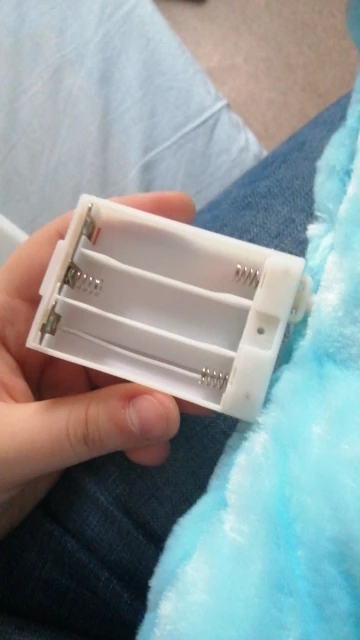 Доставка была быстрой. Сначала разочаровалась - решила, что не работает кнопка. Почитала в отзывах, что нужно батарейки вставить. Есть внизу на липучке прорезь, вставила батарейки - все работает. Ребенку сюрприз будет на новогодних каникулах!))