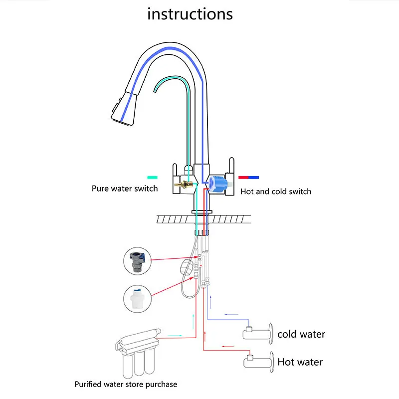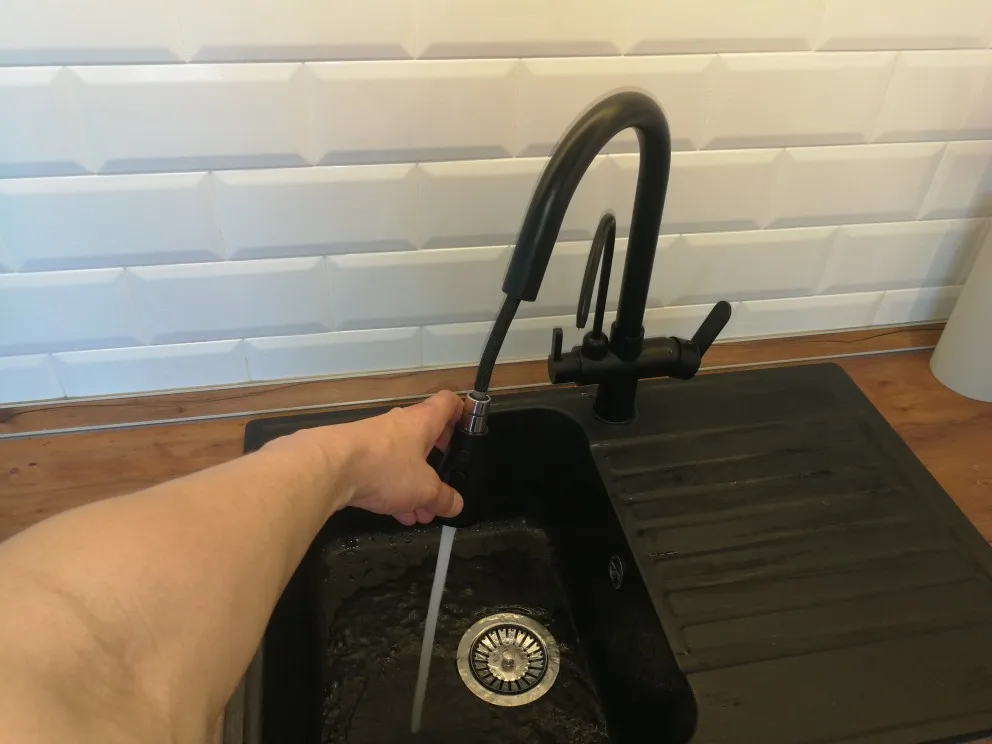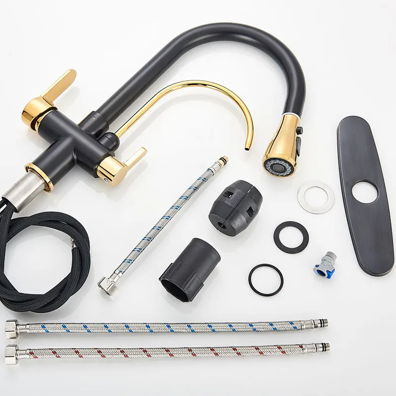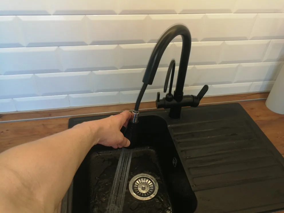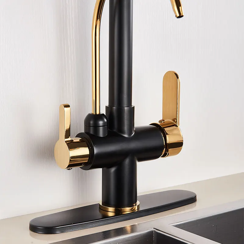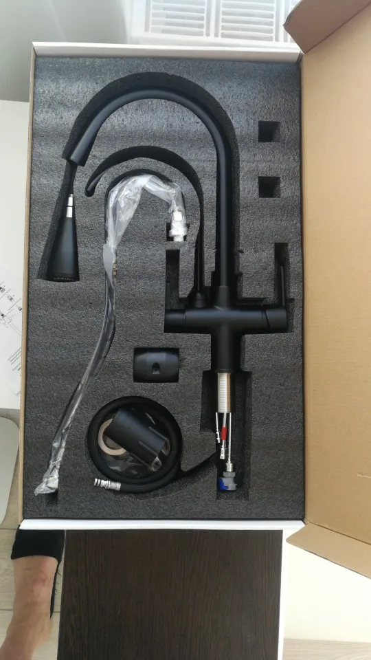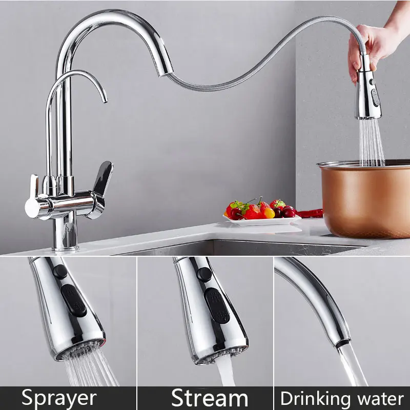 Матовый черный кран с фильтром для кухни, выдвижной смеситель с вращением на 360 градусов, тройной, для кухонной мойки