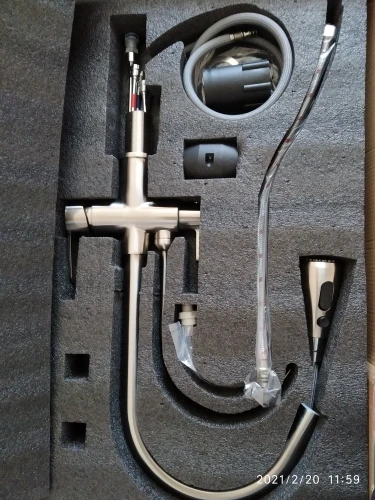 Упакован хорошо, пришел быстро, но вот только пока не понятно, быдет ли насадка с шлангом убираться сама или все время будет болтаться , как сопля. может быть при подключении непосредственно воды что-то изменится, сейчас , не в подключённом состоянии, в свободном движении