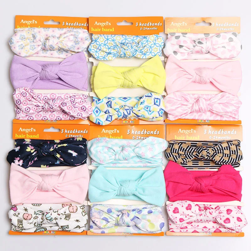 Повязка на голову с бантиками для маленьких девочек, аксессуары для волос с кроличьими ушками и цветами, головной убор для новорожденных, подарок для младенцев, 3 шт.