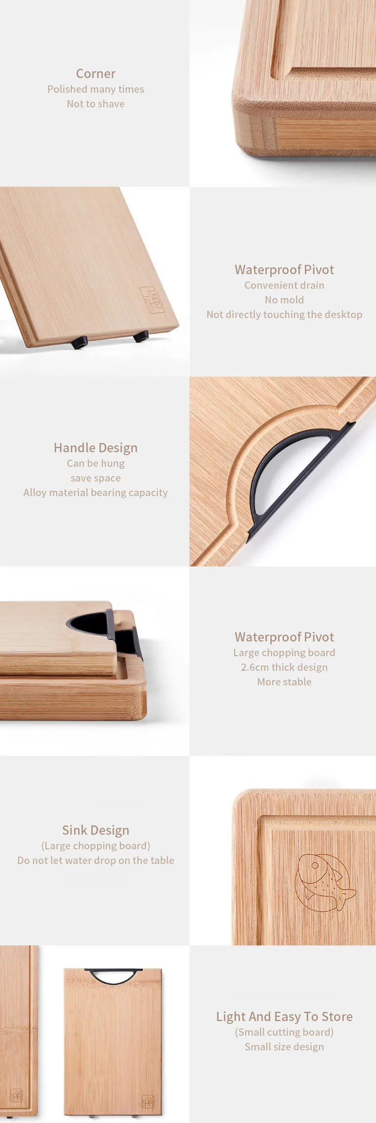 Xiaomi Yiwuyishi бамбуковая разделочная доска для кухни, толстая разделочная доска для овощей, инструменты для мяса, кухонные аксессуары, разделочная доска S,L