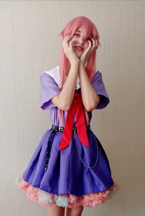 Аниме 2nd Mirai Nikki Gasai Yuno Lolita Сейлор косплей костюм лоли лук короткая юбка парик Длина 80 см для женщин