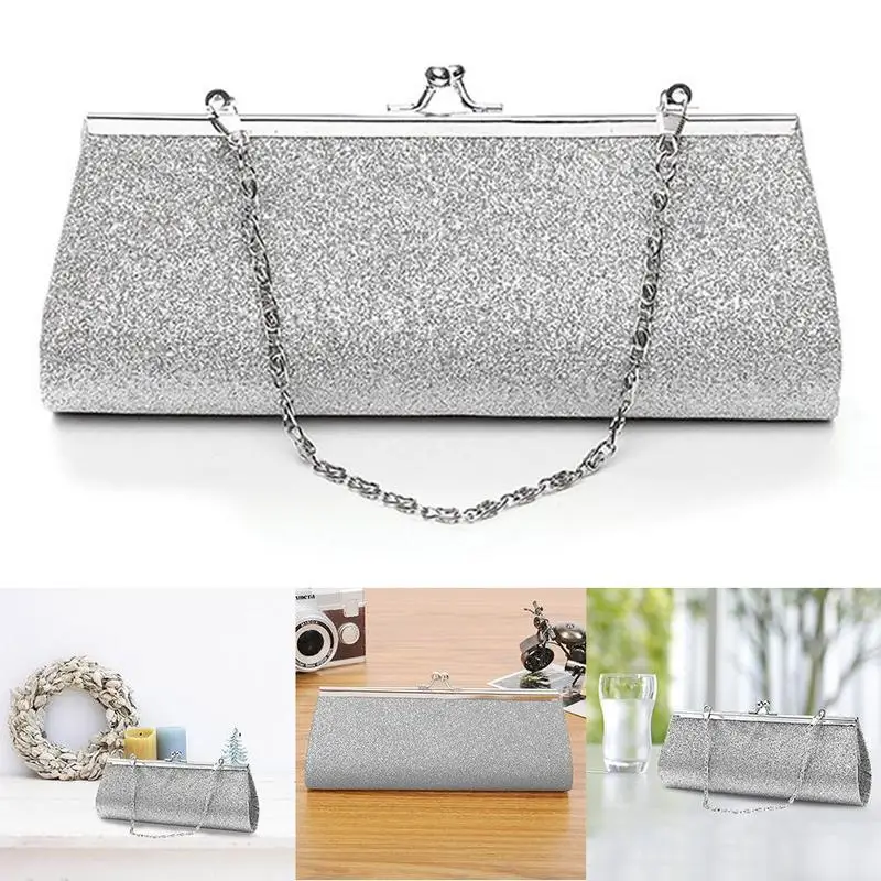 Модная Женская Блестящая Серебристая сумочка-клатч для вечеринки, свадьбы, банкета, сумка на плечо, элегантная деловая сумочка