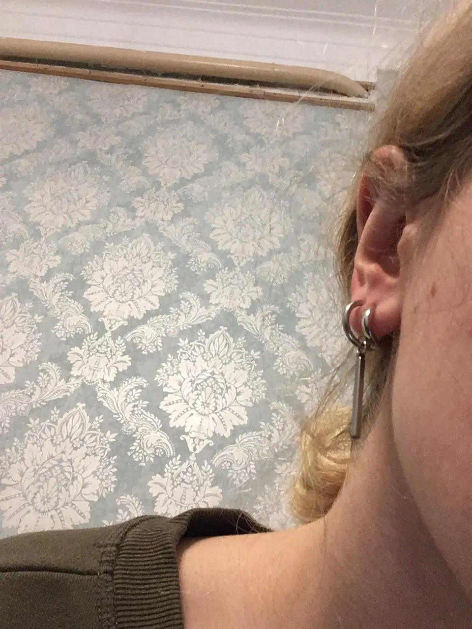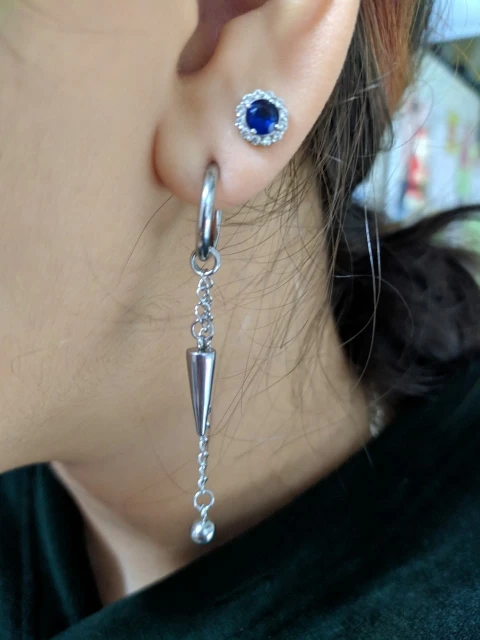 Товар доставили до почтового ящика, воу. Серёжка немного тянет мочку (тяжёлая), но с уха не спадает