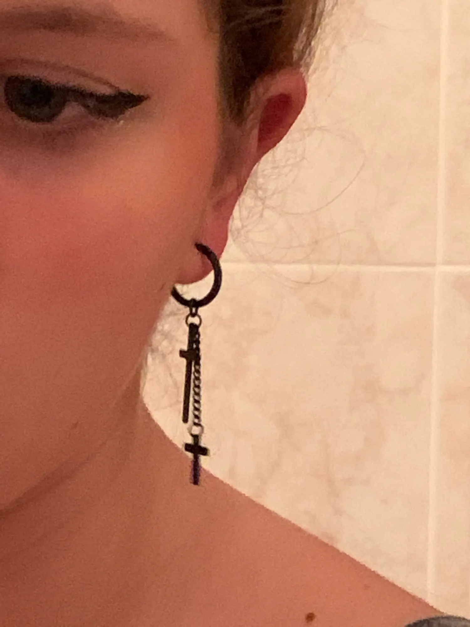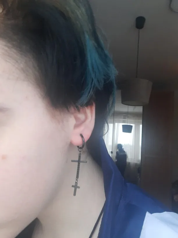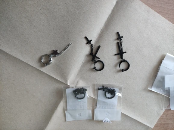 Заказала 2 сережки - черную с крестиком и серебряную с конусной подвеской. Черная оказалась клипсой (то есть прокол в ухе не нужен), но держится довольно хлипко и боюсь, что может легко потеряться. А вот серебряная - это сережка, которая вставляется и нормально закрывается. Не знаю как тут угадывать, что окажется клипсой, а что сережкой...