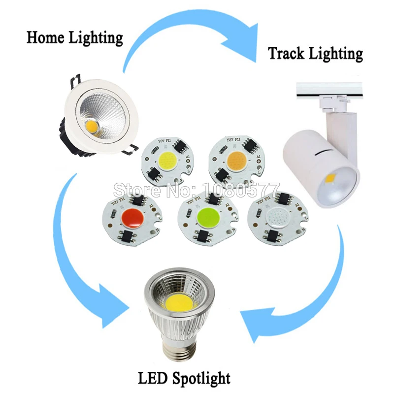 2-10 шт. 3 Вт 5 Вт 7 Вт 10 Вт 12 Вт светодиодный чип COB 220 В Smart IC драйвер лампа красный зеленый синий источник светильник для DIY прожектор точесветильник свет