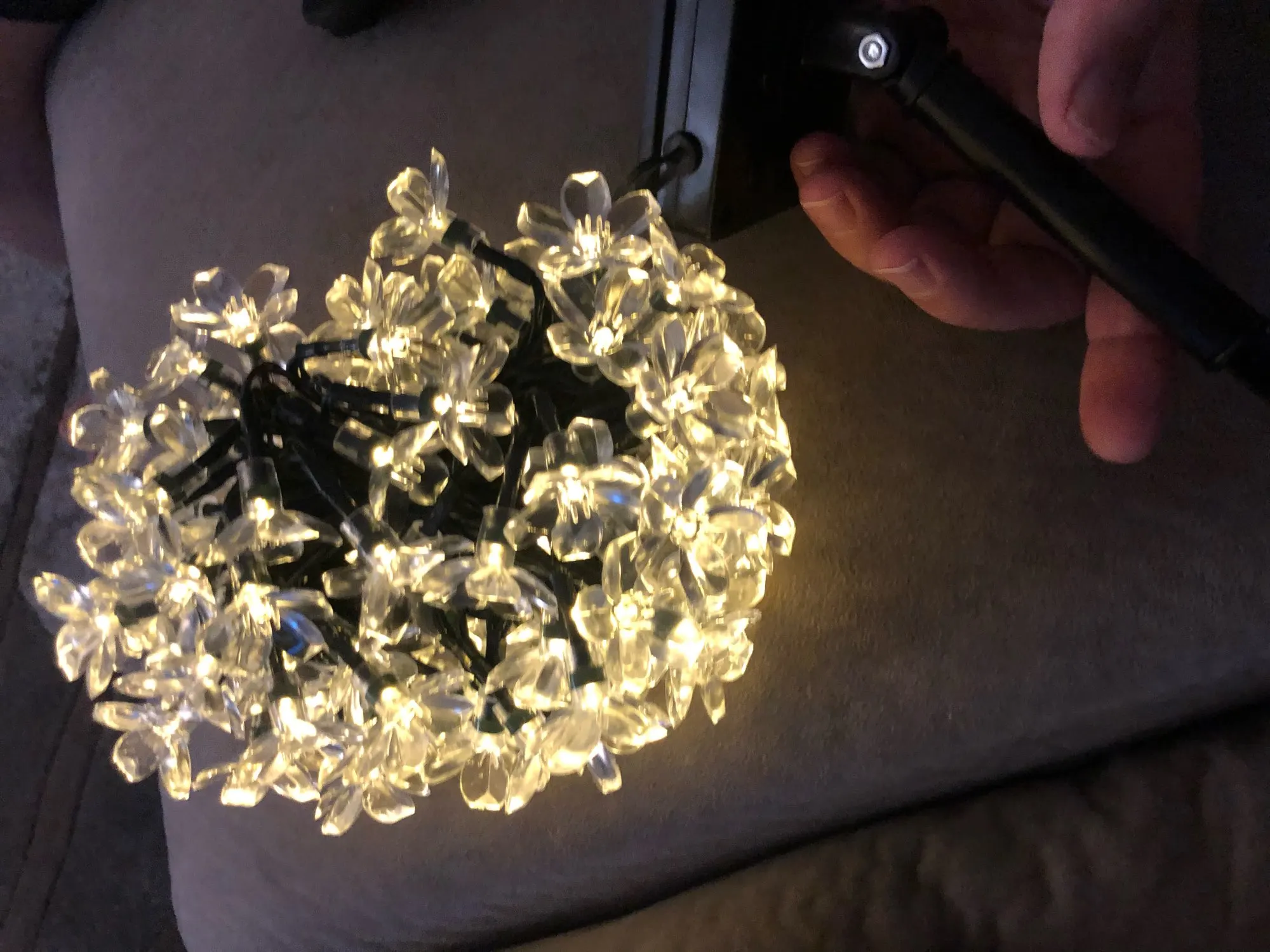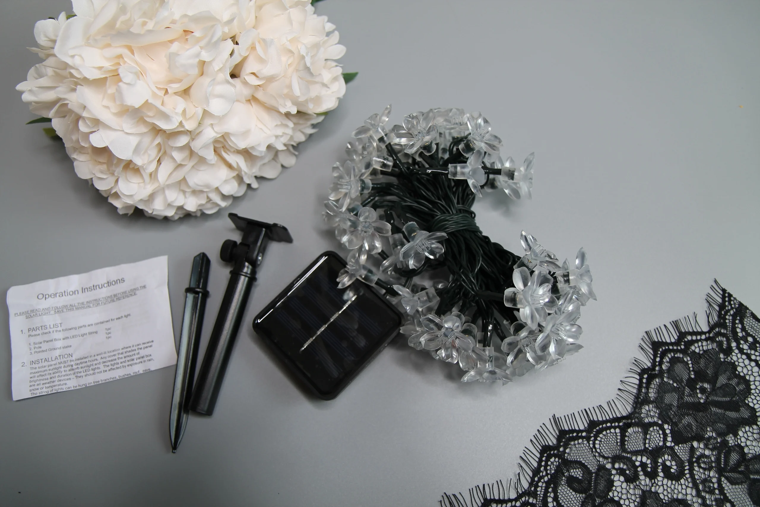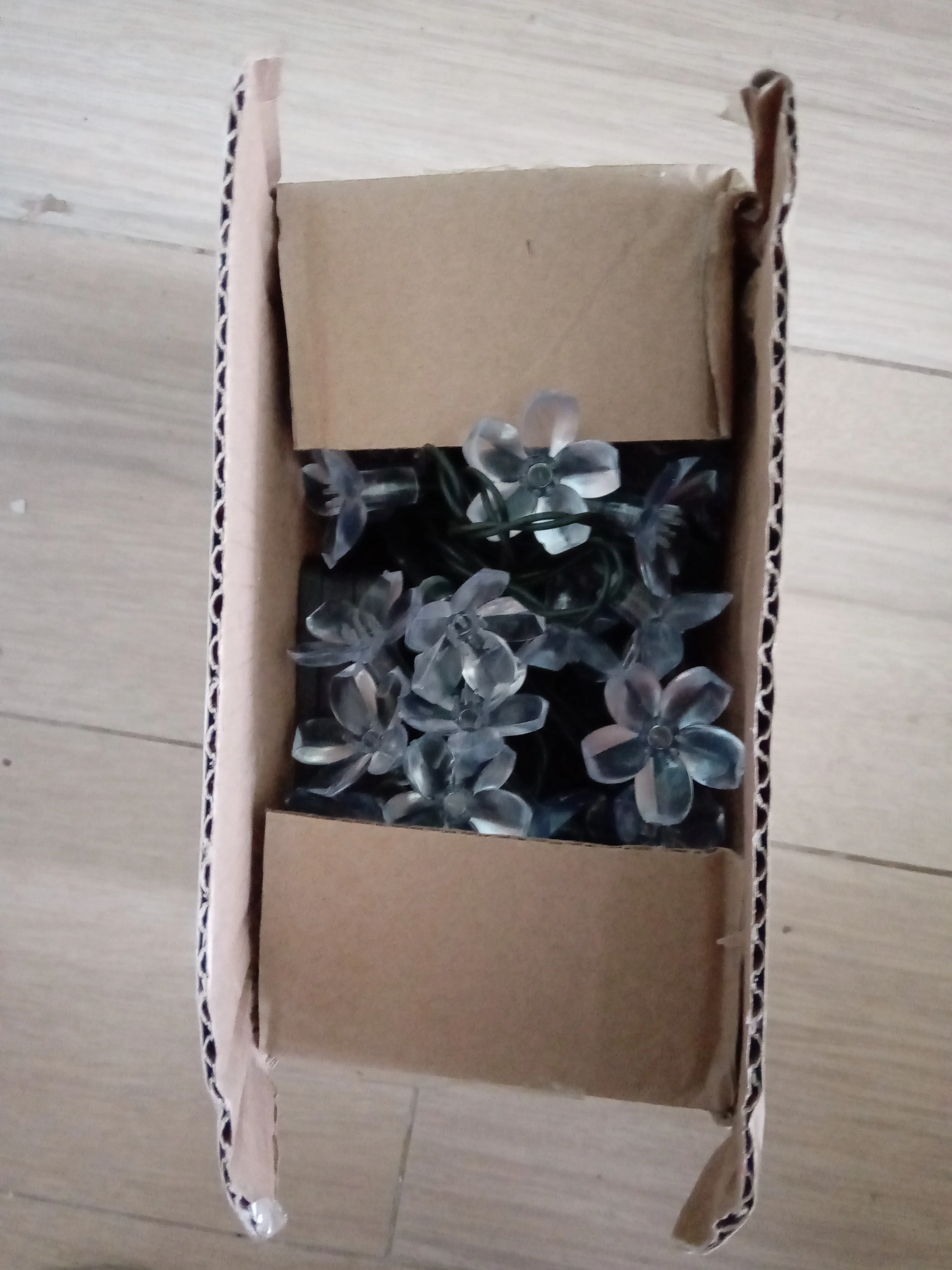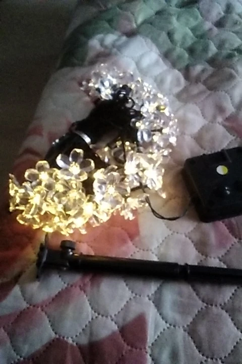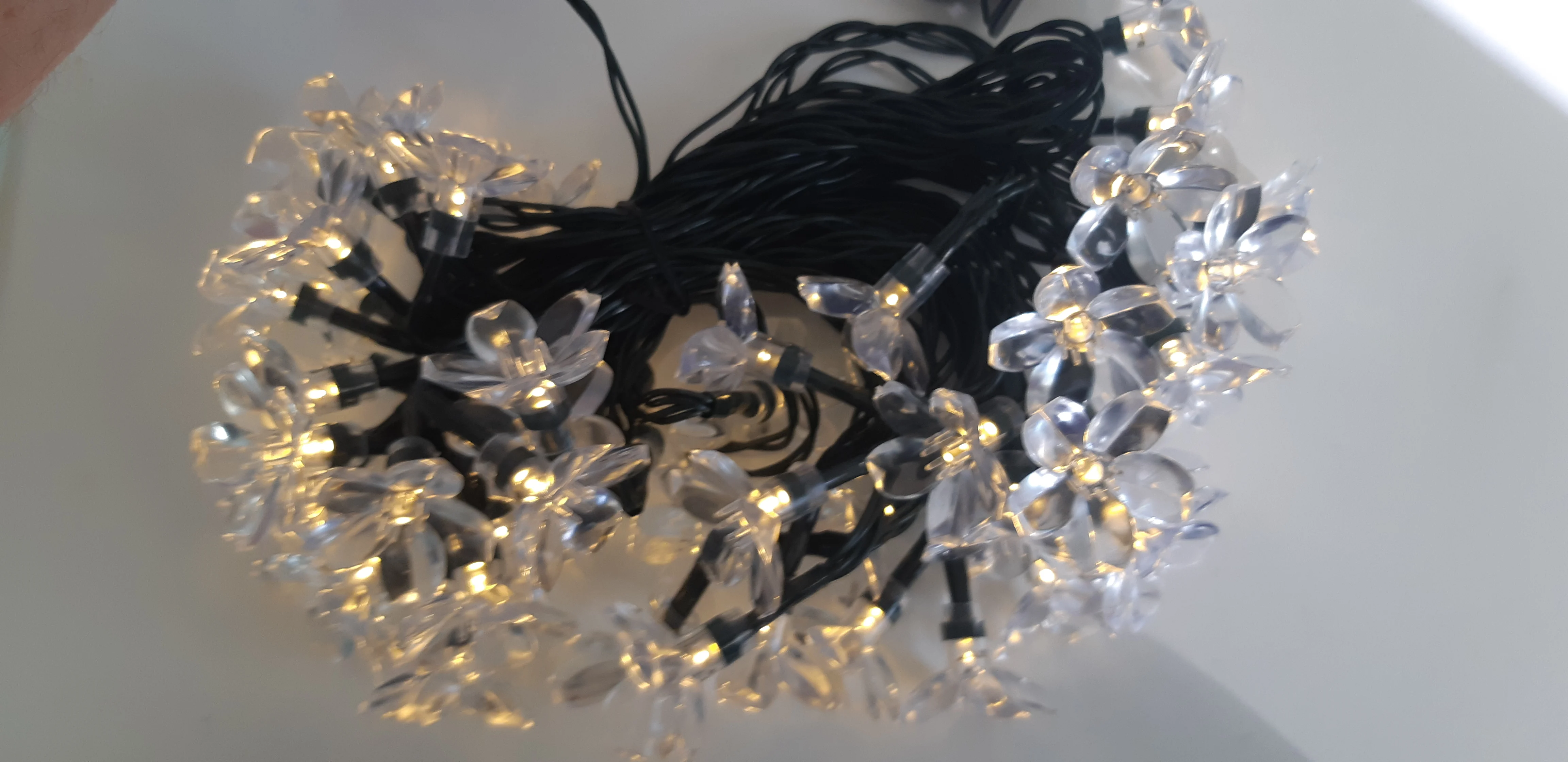 Пришла моя гирлянда, отлично упаковано, в коробку, два запасных цветка силиконовых, не заряжена, как проверю дополню отзыв, вещь хорошая, вечером будет красиво в огоньках, у кого свой двор покупайте, продавцу Спасибо. О загорелись огоньки.