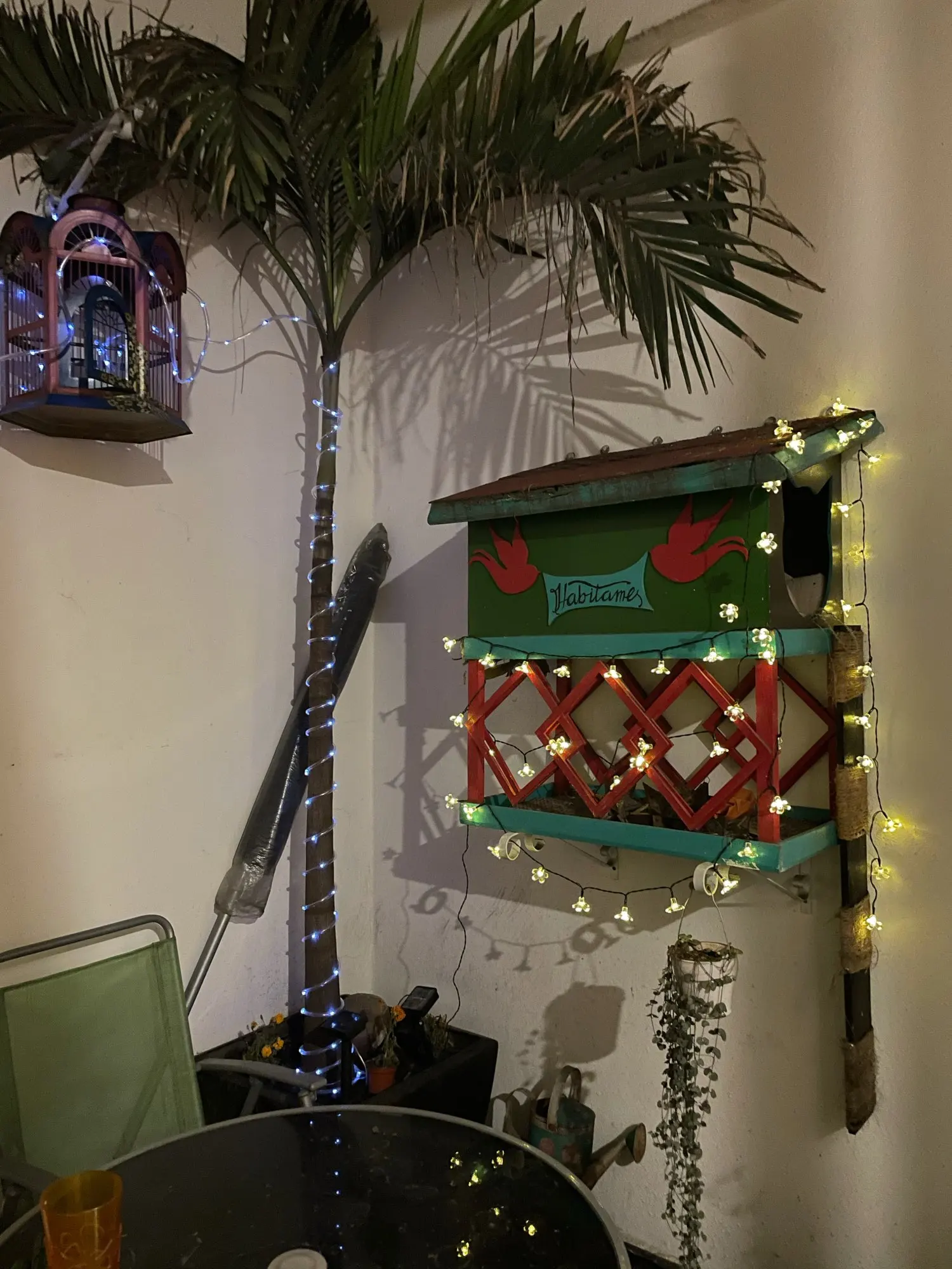 Это красивые огни. Я получил 22-метровую нитку и повесил ее на жимолое с ремешками на молнии.