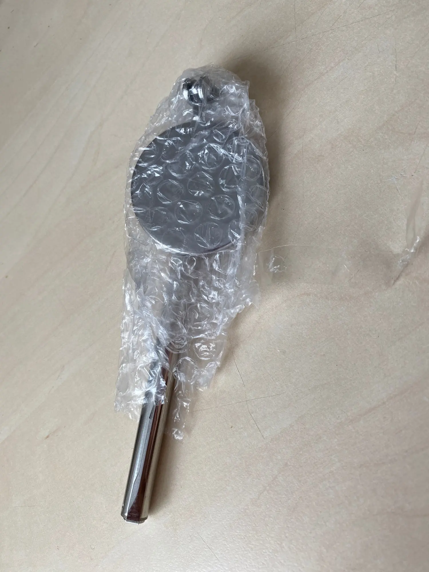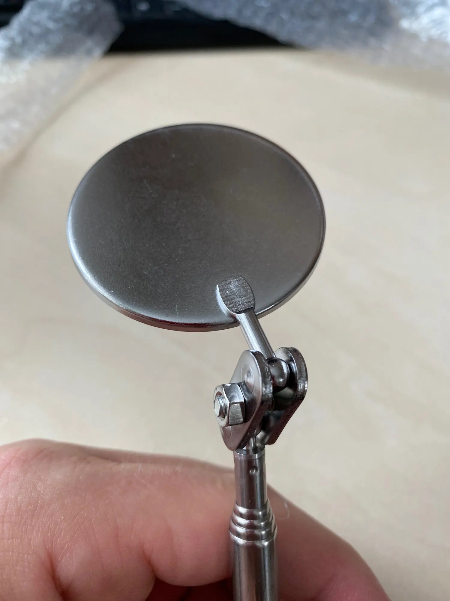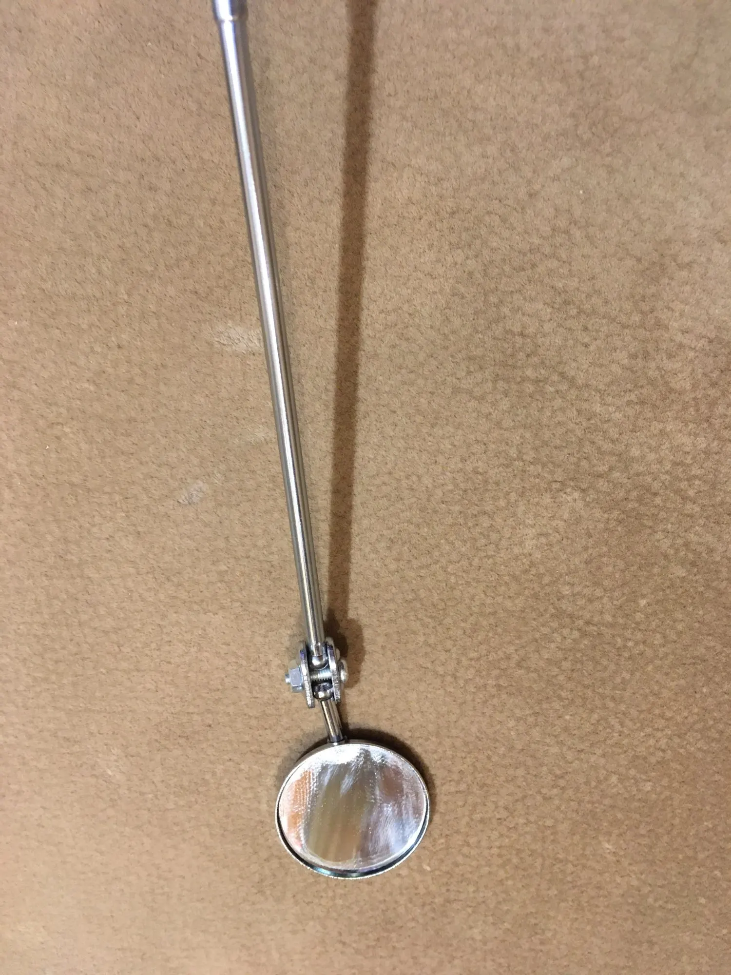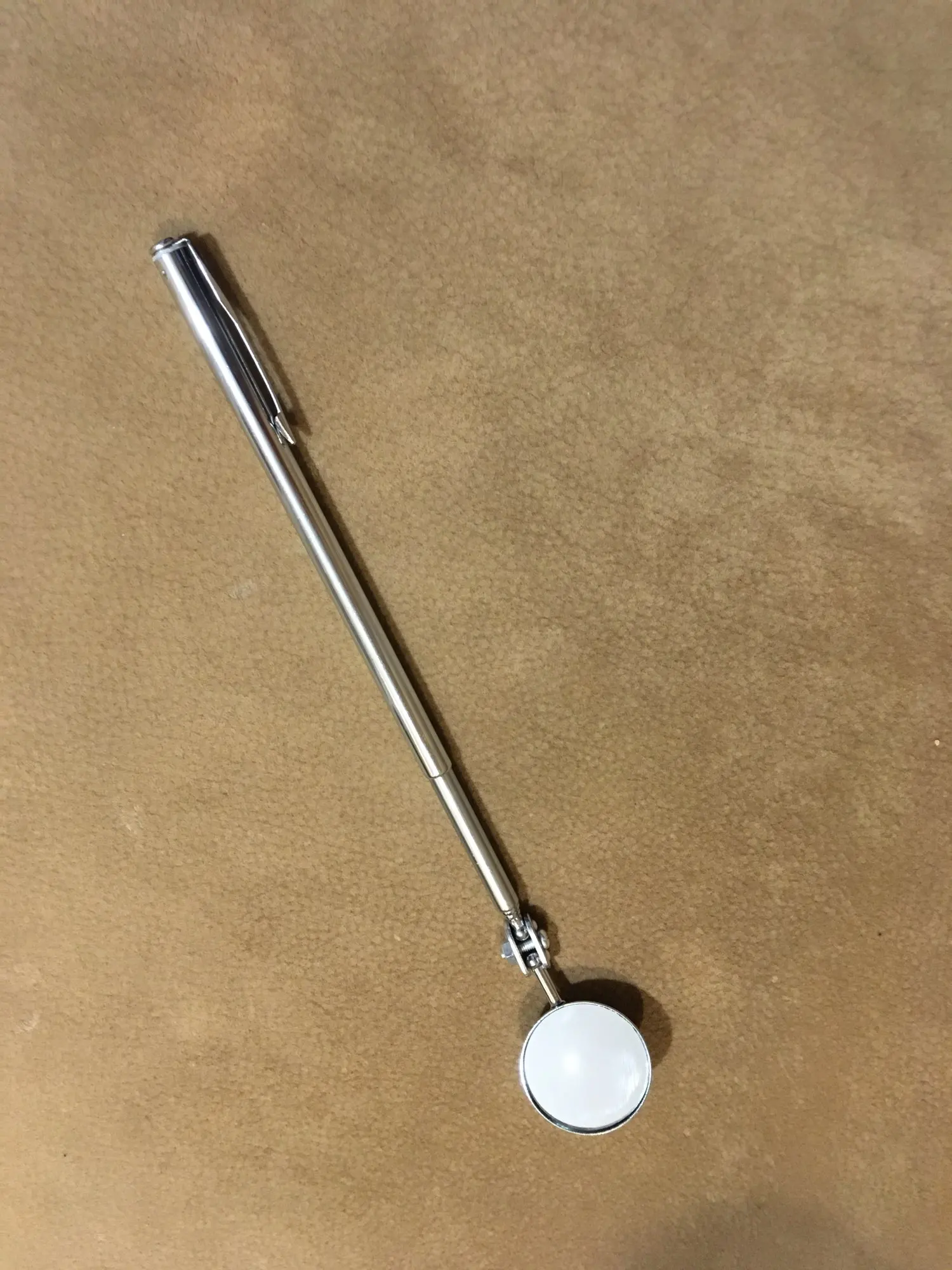 Доставка очень быстрая совместно с другими заказами. хорошее зеркальце, ручка раздвигается от 14 до 55 см. У меня было такое же, только с магнитом на конце. это к сожалению без магнита.