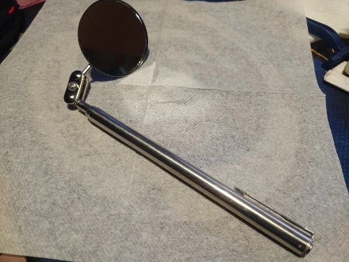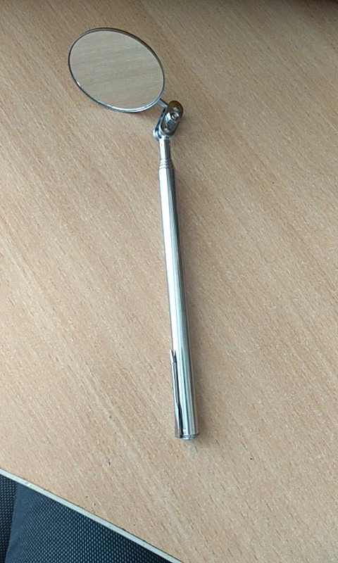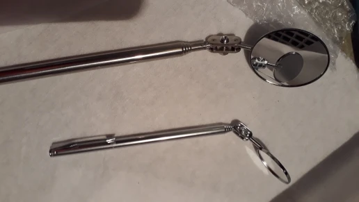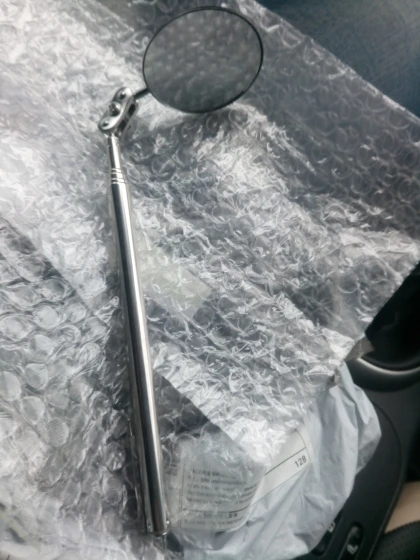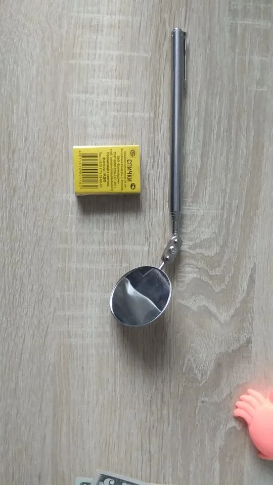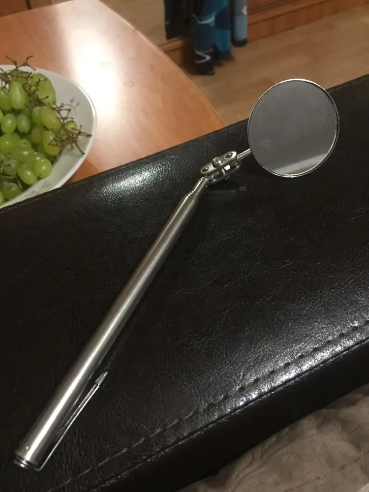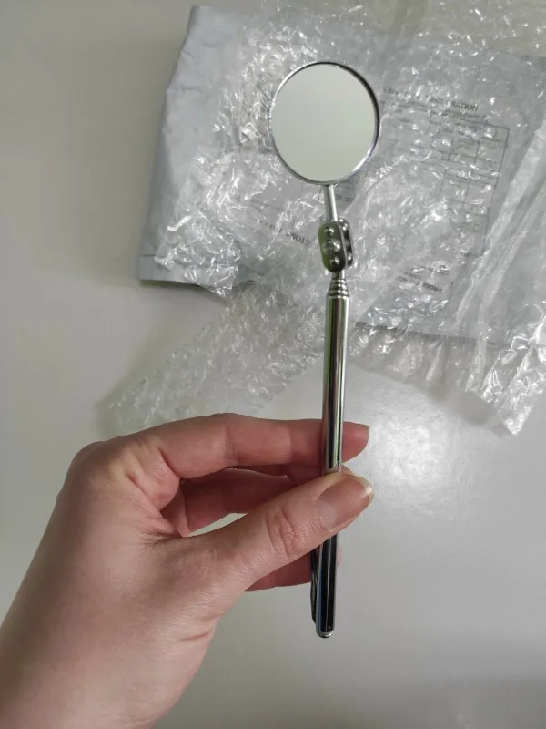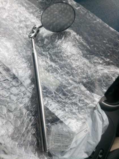 Продавцу спасибо.Отправка с доставкой 35 дней.Трек номер отслеживается.Отличное зеркало в виде ручки указки сделано.Телескопическая ручка длина 55см в выдвинутом состоянии..Само зеркало хорошее видно отчётливо.Нужная вещь при ремонте авто.Да и дома пригодится где либо посмотреть в труднодоступных местах.Я очень остался доволен данной покупкой.