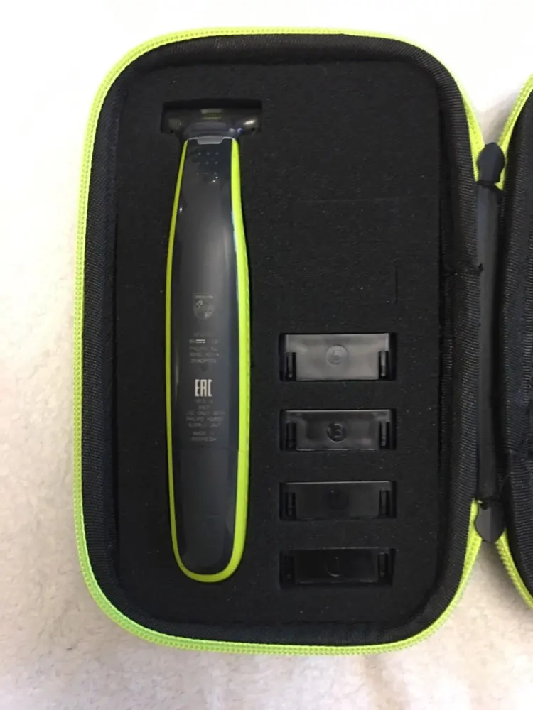 Качество продукции очень хорошее: материал прочный и уверен, что это защитит лезвия. Идеально подходит к модели Philips oneblade Face & Body (QP2620/10) и ее аксессуарам. Заказал зеленый и красный, но продавец отправил оба в зеленом цвете. Доставка в Бразилию всего за 35 дней, без почтового заказа.