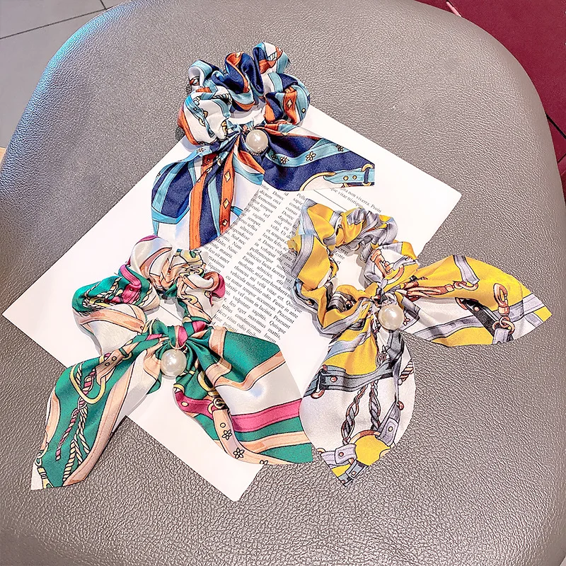 Резинка для волос женская с бантом и жемчугом, с принтом
