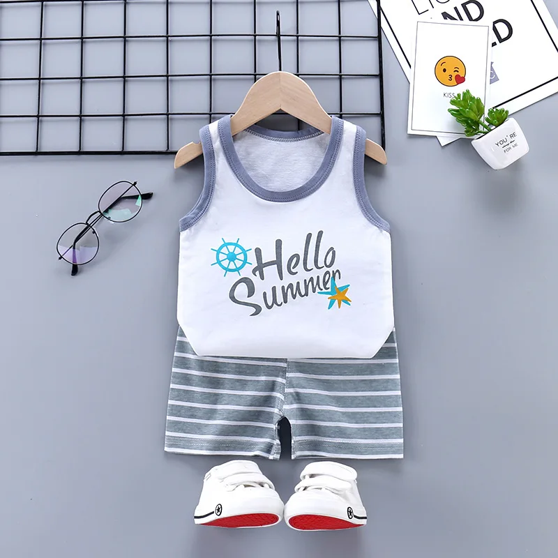 Комплект одежды для мальчиков и девочек, летний хлопковый жилет без рукавов для мальчиков и девочек, 2 шт.компл., 12 мес.-5 лет