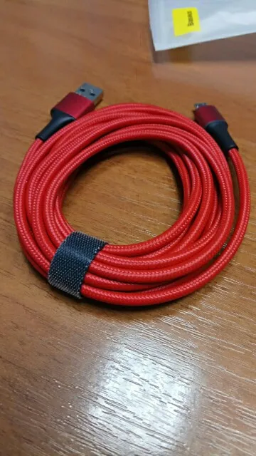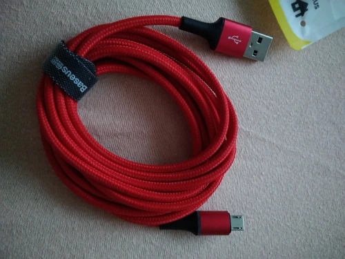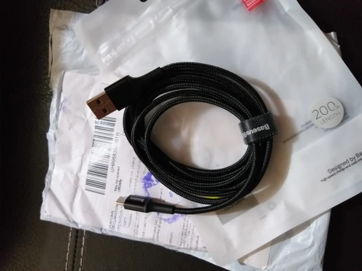 Хороший кабель на 2 м. Жёсткая оплётка, сам штекер подсвечивается. Заказ шёл стандартный месяц, причём неделю из этого срока от таможни до почты. Есть зажим для фиксации кабеля при скрутке его в кольцо, что тоже удобно. Товаром доволен.