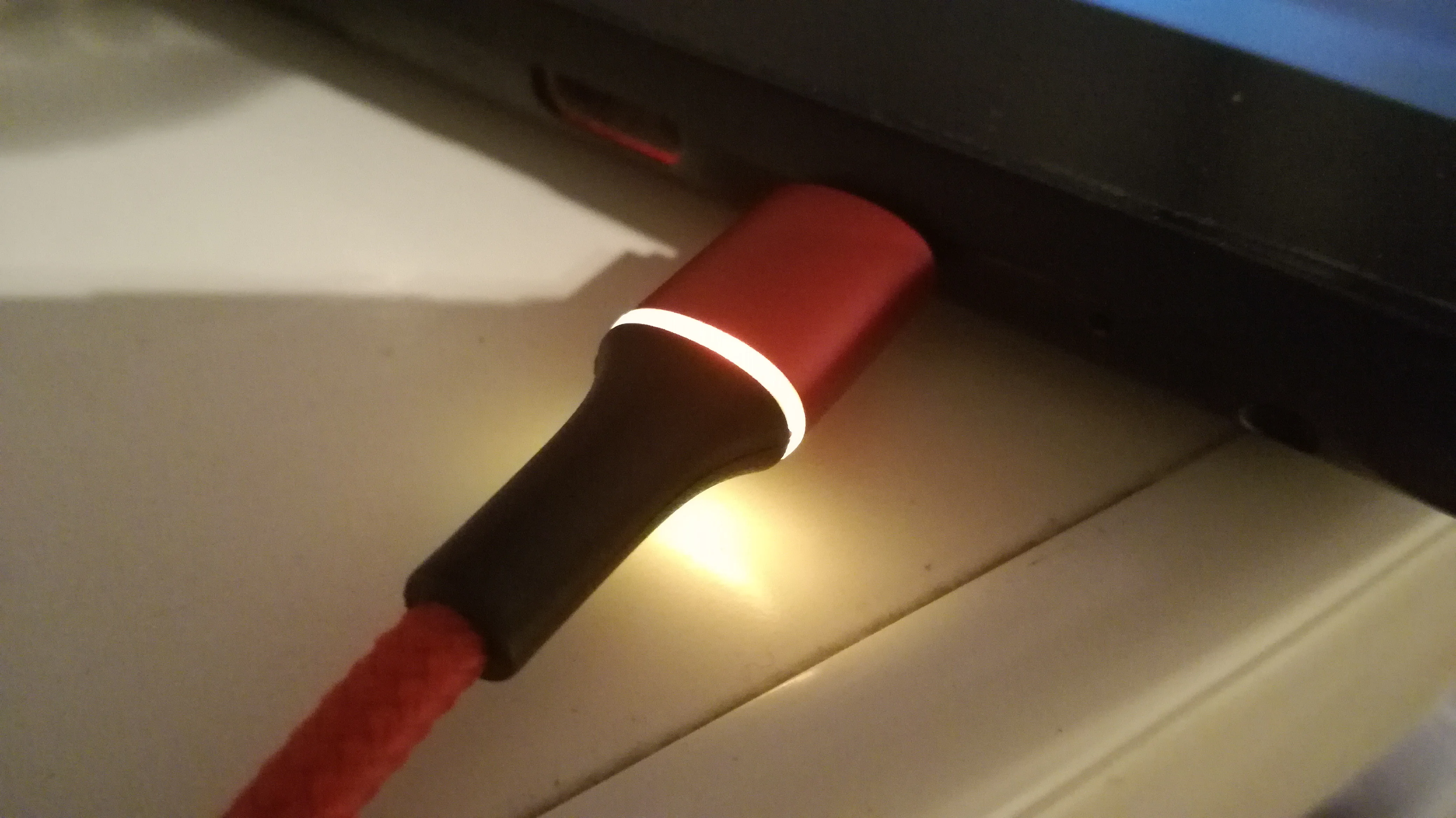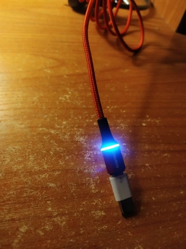 Хороший кабель и жесткий. Но очень теплое подключение к телефону, светодиод очень сильный и беспокоится ночью, иногда кабель падает на смартфон, он не держит права, в противном случае очень полезно