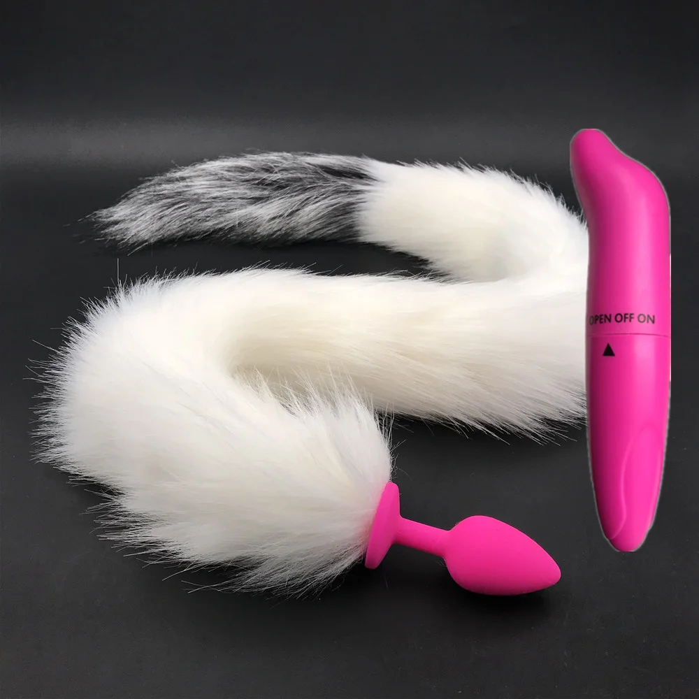 2 шт.лот вибратор и длинный 80 см белый и серый лисий хвост Анальная пробка металлическая секс-игрушка анальные игрушки секс-игрушки для женщин мужчин сексуальные взрослые