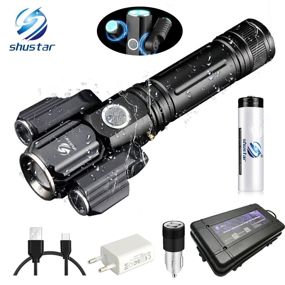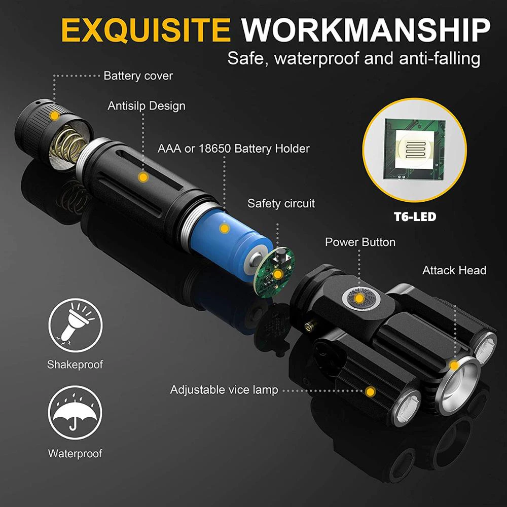 Деформируемый светодиодный фонарик, суперяркий фонарик 1T6 + 2XPE, масштабируемый, 4 режима освещения, работает от аккумулятора 18650, для кемпинга, охоты