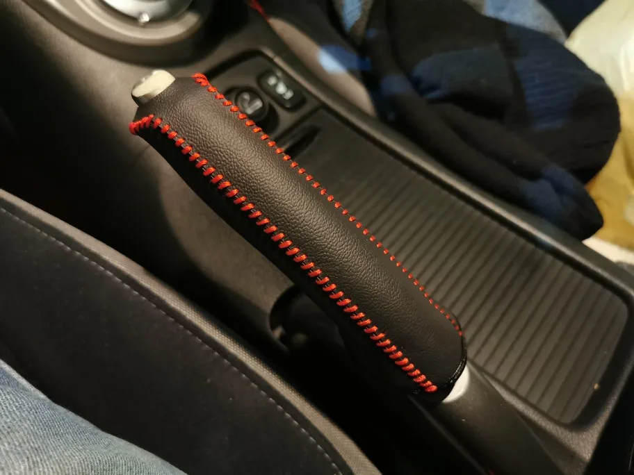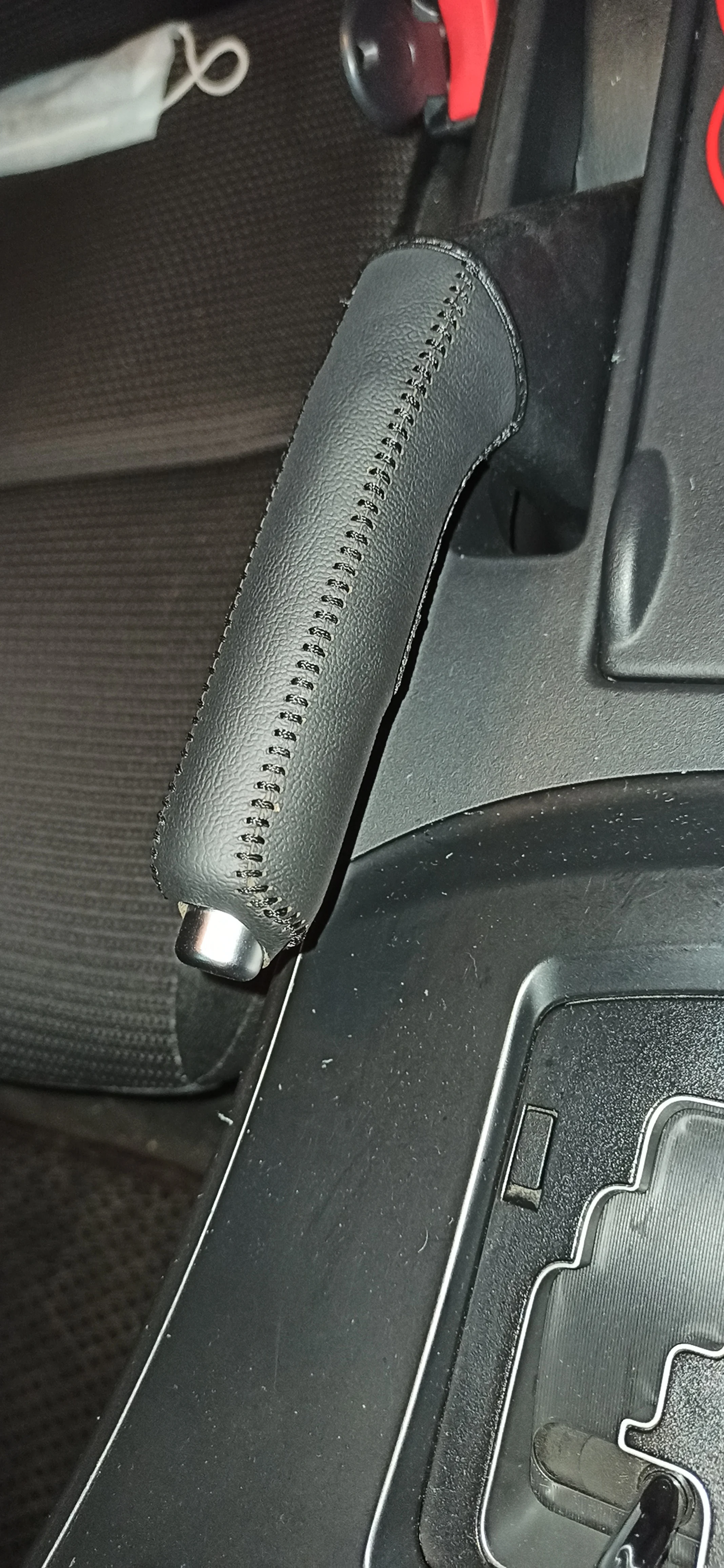 Эта крышка идет поверх резиновой резины ручного тормоза, а некоторые прямые и другие имеют. Как более эргономичная ручка. И он более якорь в Экстриме, поэтому нет 100%, но это зависит от каждого транспортного средства. Но на вид выглядит очень хорошо