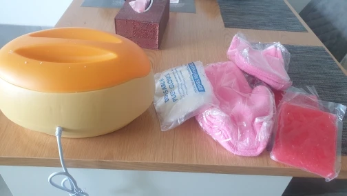 Очень долгая доставка. В наборе маленькая пластинка воска, поэтому нужно заказывать отдельно еще как минимум 3 штуки. Нет одноразовых перчаток и носочков. Тоже надо отдельно заказыаать