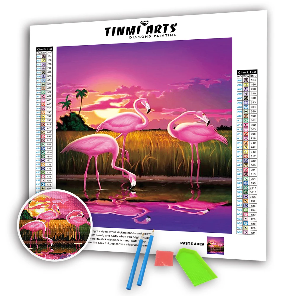 5D DIY алмазные картины Полный Круглый сверлильный фламинго на закате мозаика Художественный набор животных вышивка наклейки на стену украшение дома
