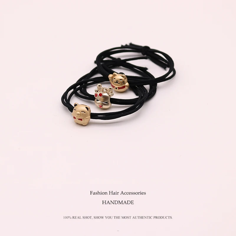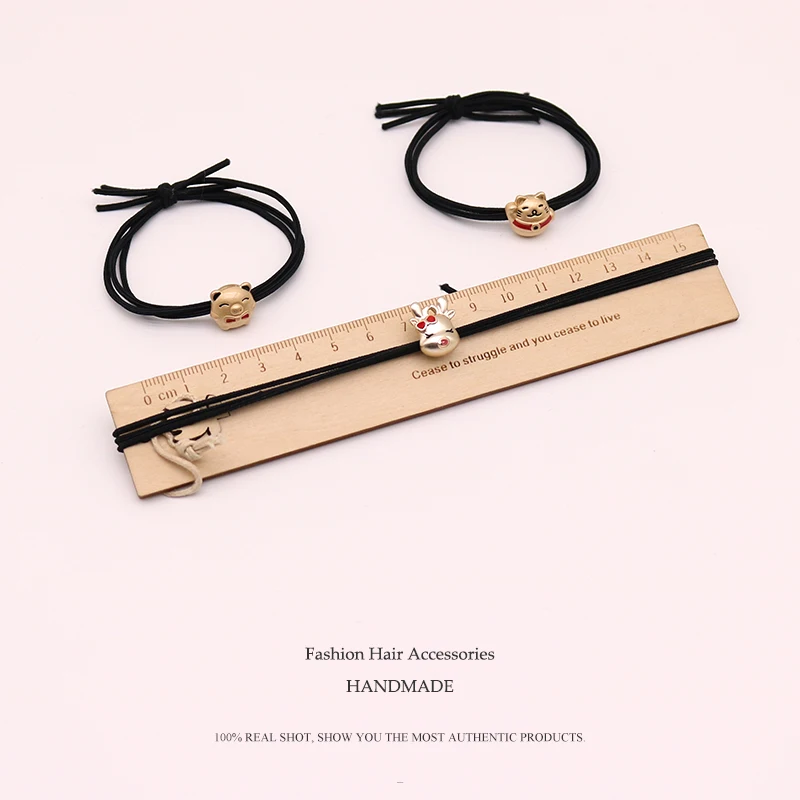 Резинки для волос Euhra из Золотого Сплава Женские, милые эластичные аксессуары для волос с милым мультяшным котом, головой оленя, Сика, олень, свинья