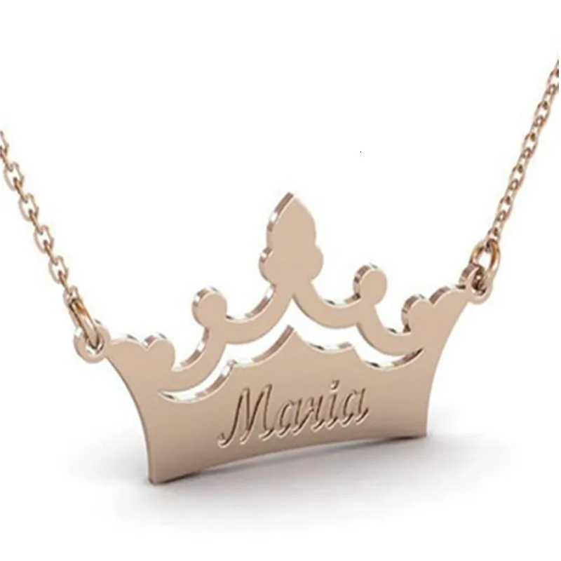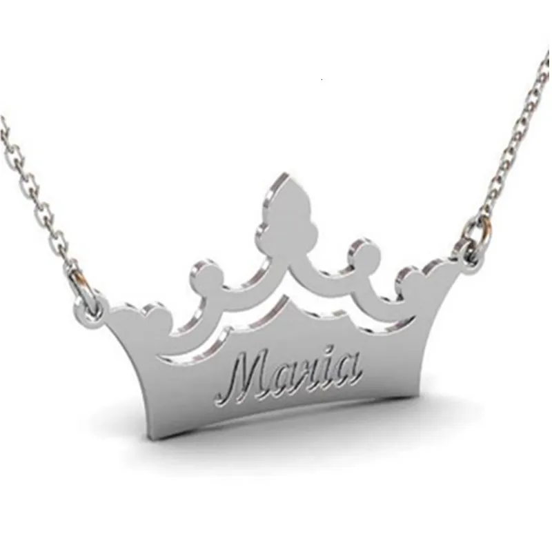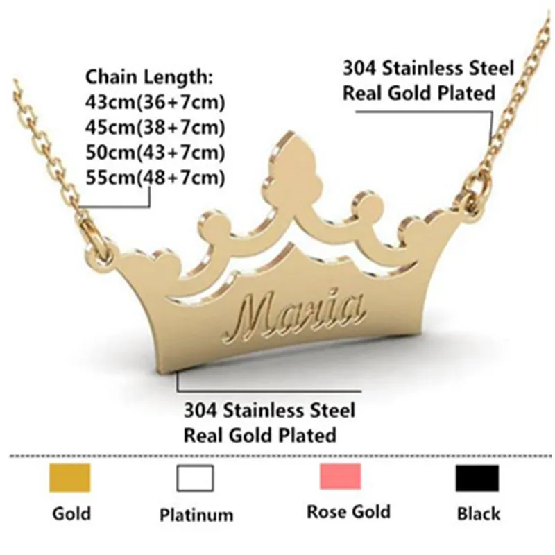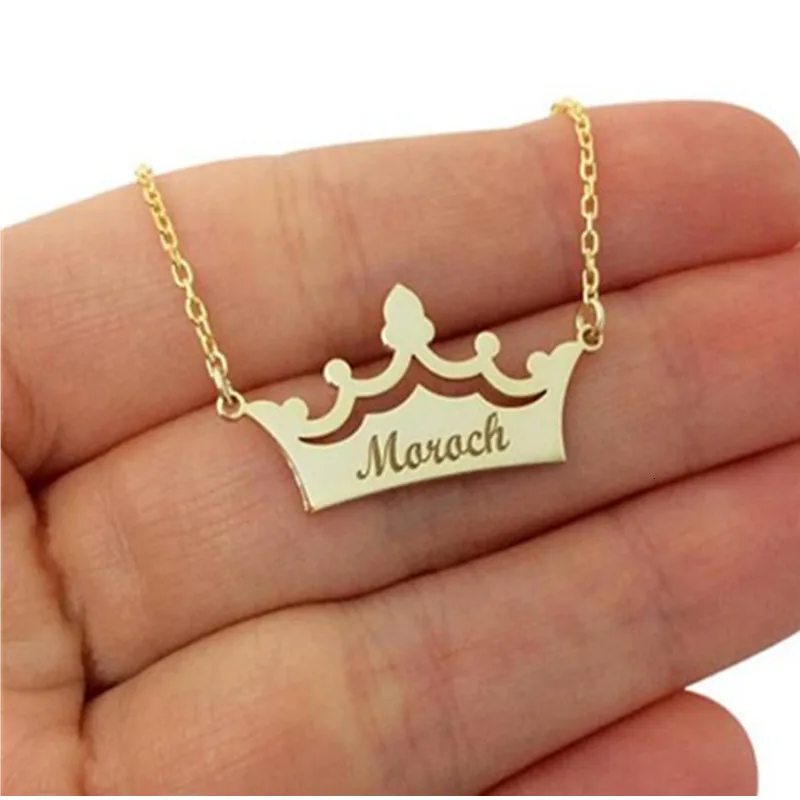 Ожерелье с именем принцессы, персонализированное ювелирное изделие с гравировкой имени, массивное ожерелье с именем короны, свадебный подарок для женщин