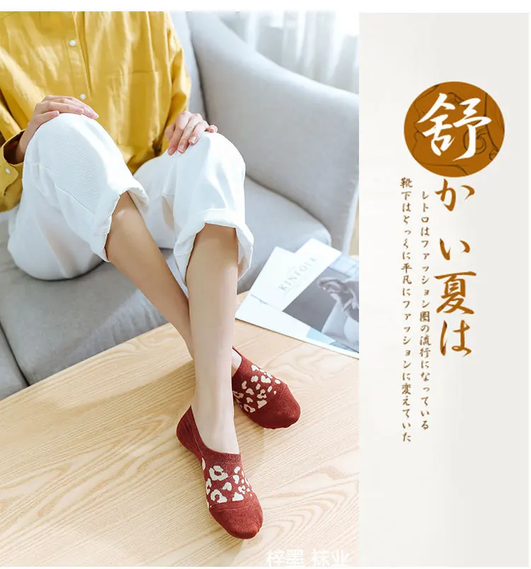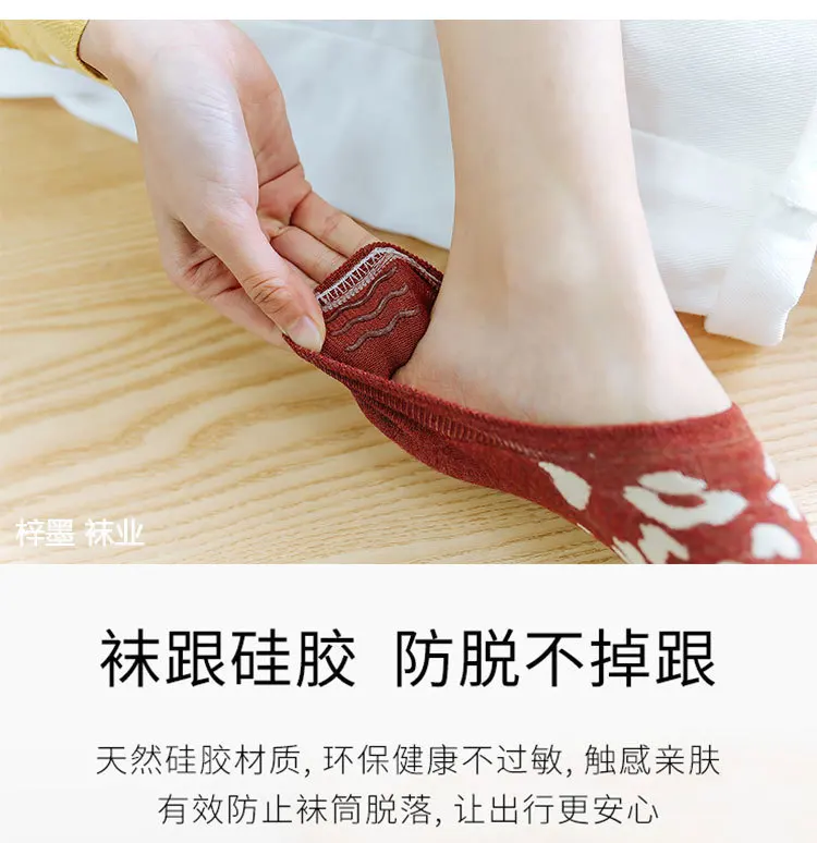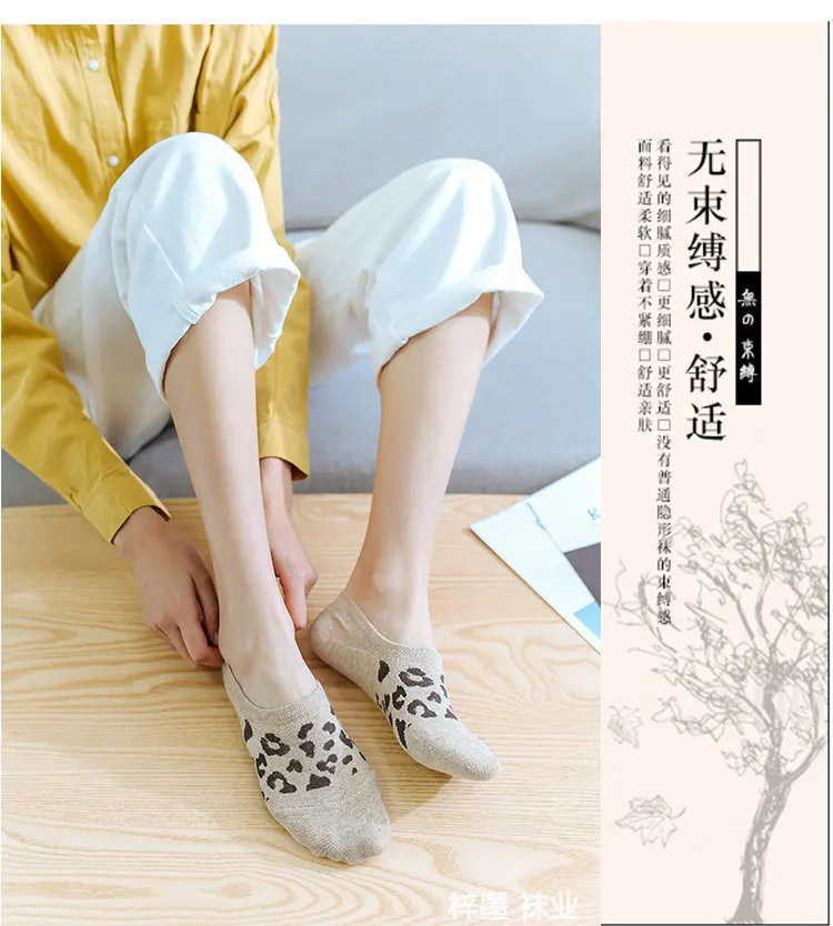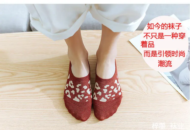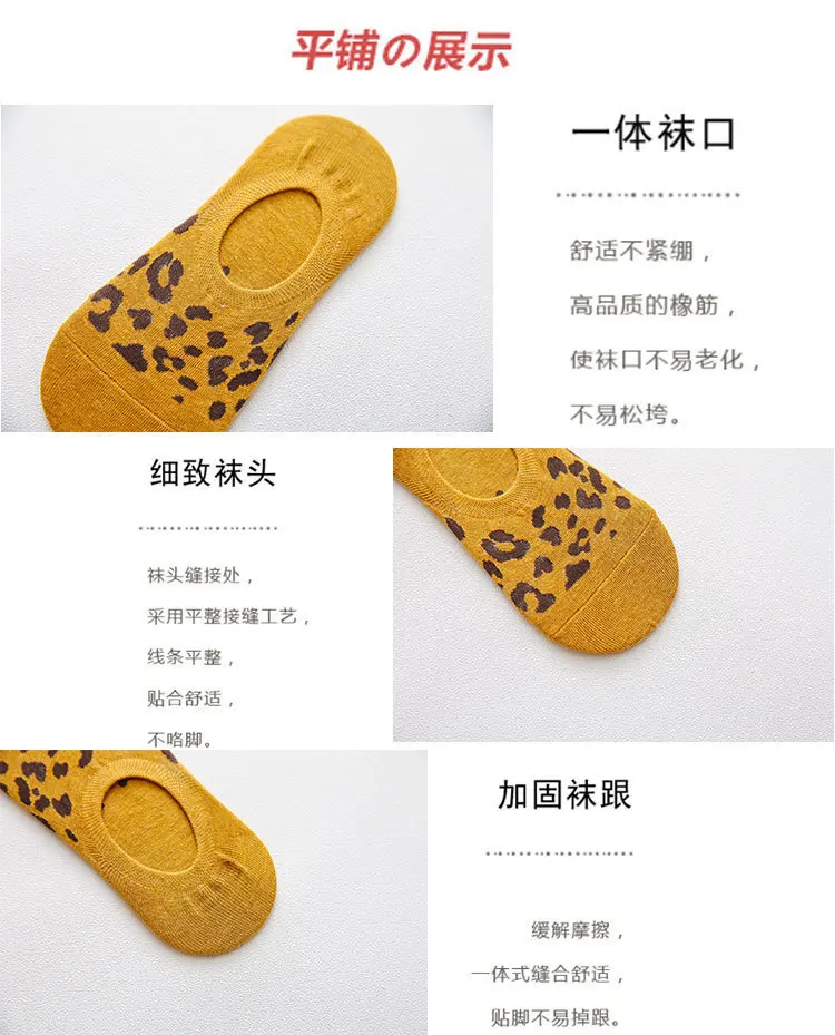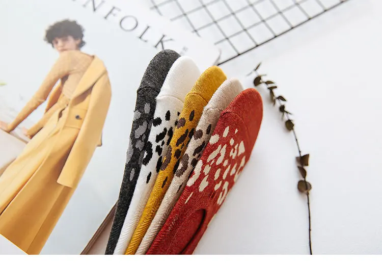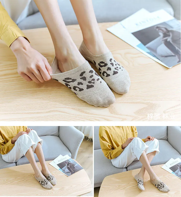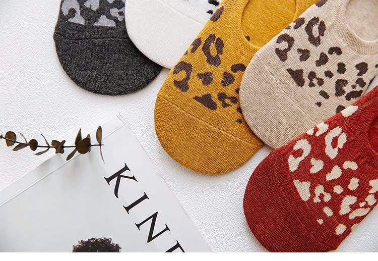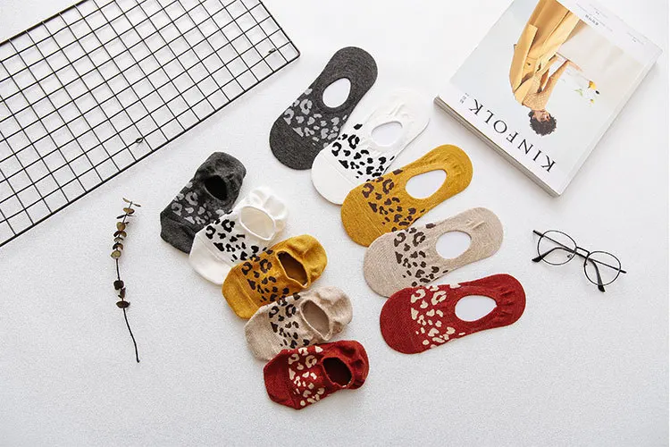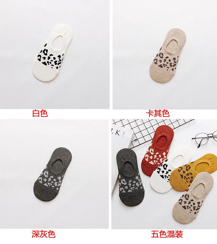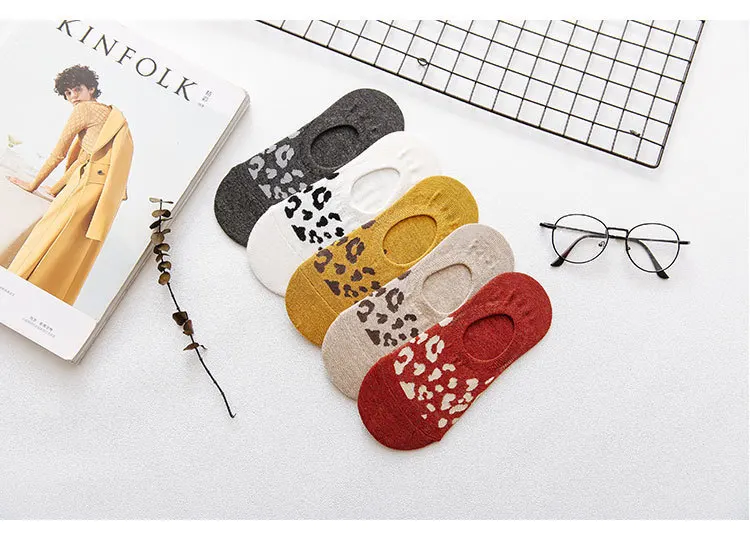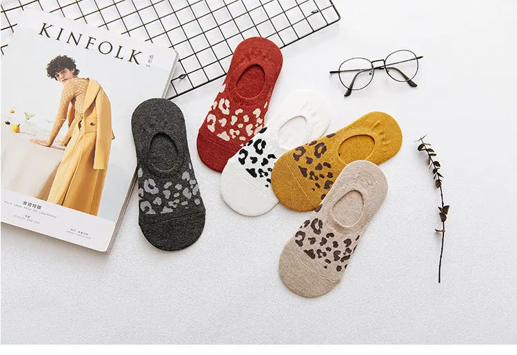 Женские леопардовые невидимые нескользящие носки, Летние Удобные Хлопковые женские лодочные носки по щиколотку, 1 пара = 2 шт., ws192