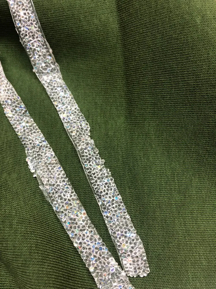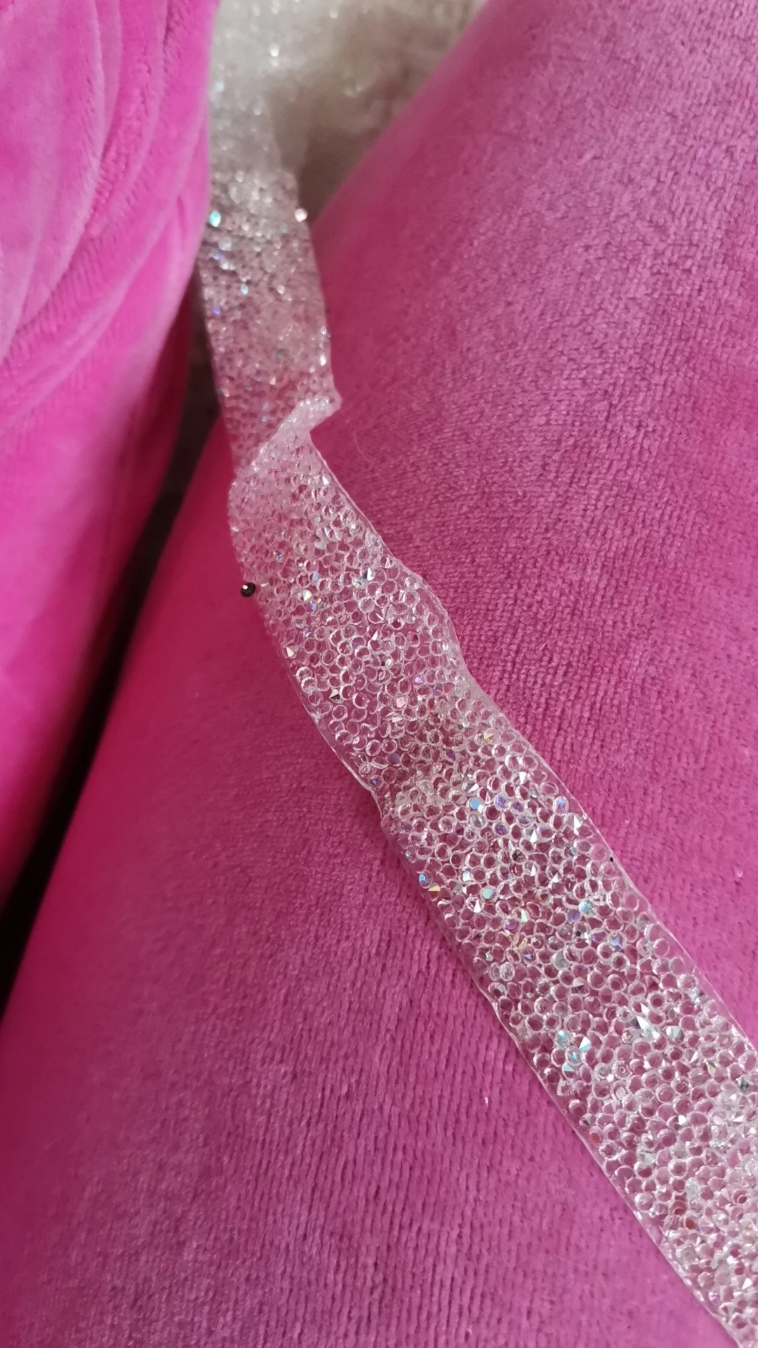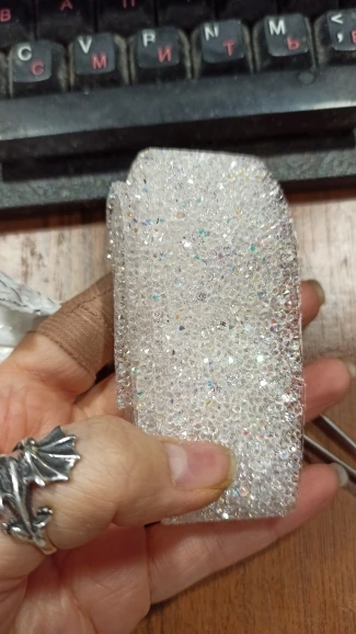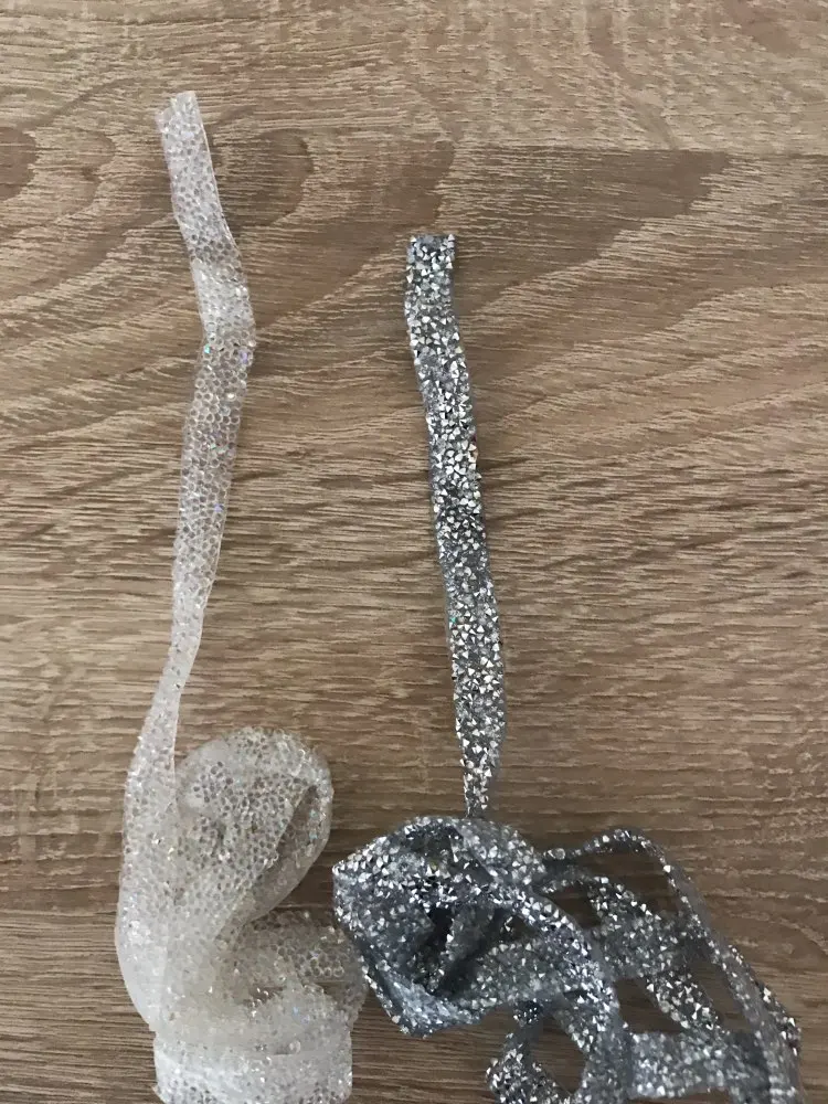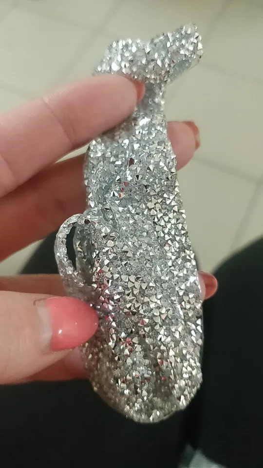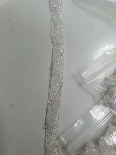 на самом деле на ленте в основном приклеены обычные прозрачные стразы и кое где блестящие. товар был весь мятый. на картинке показано в рулоне,а на самом деле прислали просто в кучу скомканное. больше у этого продавца не закажу. разматывала 30 минут тк все склеилось и при разборе стразы отвалились частично.