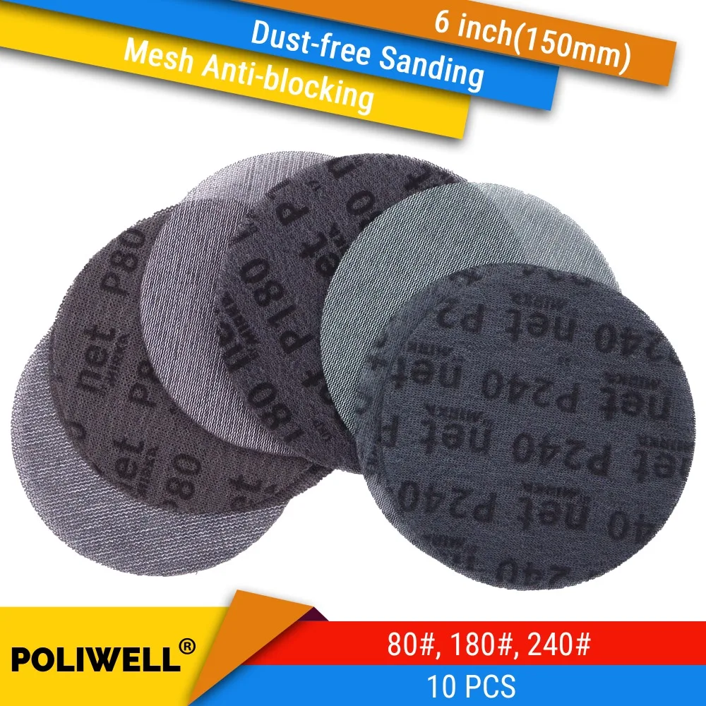 Шлифовальные диски 6 дюймов (150 мм), беспылевая абразивная наждачная бумага для полировки металла, 80 #180 #240 #, 10 шт.
