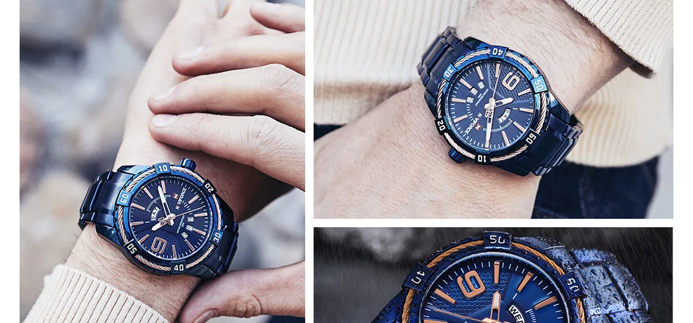 NAVIFORCE Роскошные Брендовые мужские спортивные часы золотые полностью Стальные кварцевые часы мужские Дата водонепроницаемые военные часы мужские relogio masculino