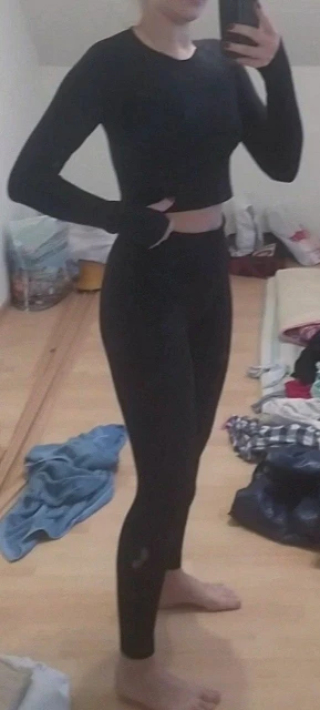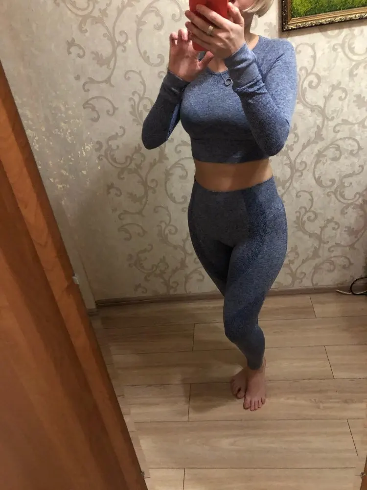 Топ в порядке, удобно носить и постирать его несколько раз и без износа. Но штаны немного просвечиваются на попке. Но брюки хорошо сидят и удобные, хорошо тянутся. Верный размер