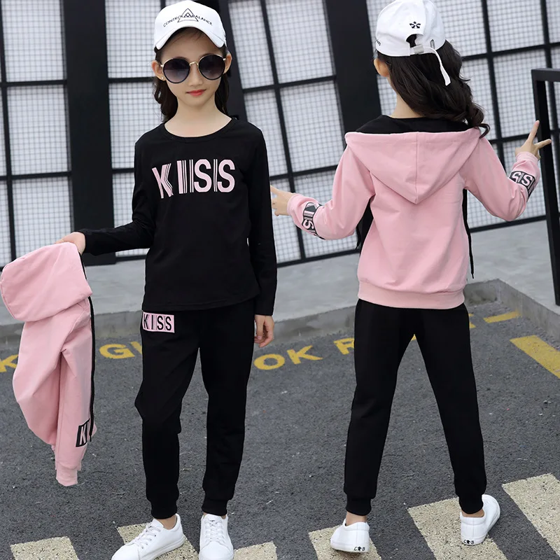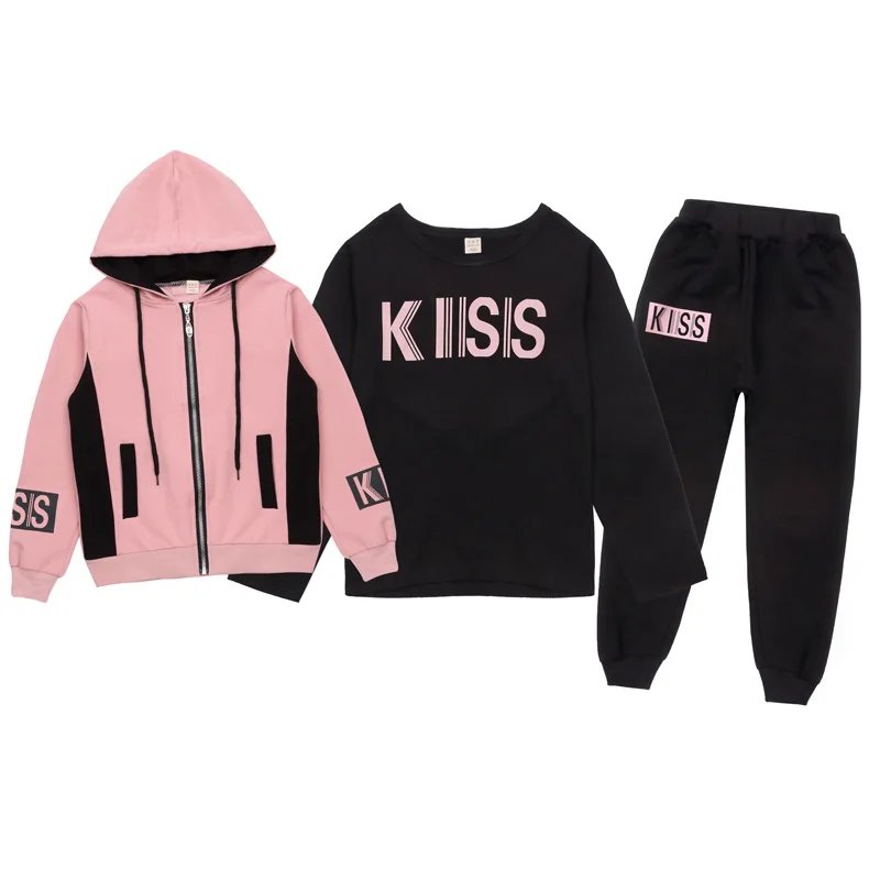 Набор одежды для девочек, куртка на молнии с надписью, детские толстовки и штаны, детский спортивный костюм для девочек, комплекты одежды, спортивный костюм на весну 21