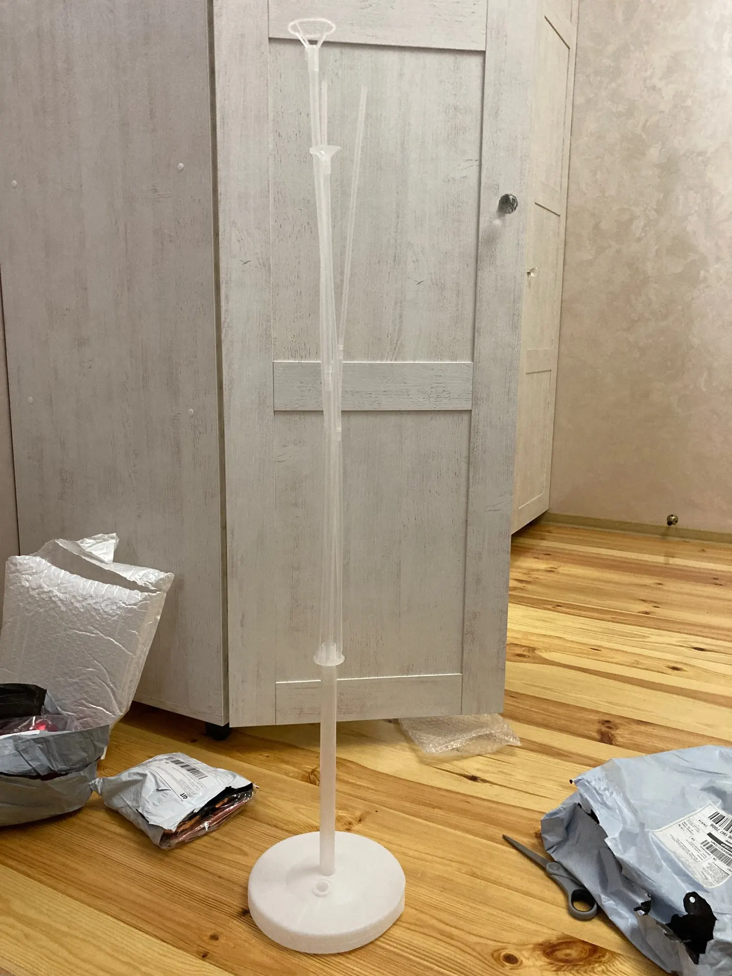 Заказ пришёл за пару недель в Москву. Заказала две стойки с бело-синими шарами на картинке. Как было и заявлено в высоту 130 см, как её собирать разобралась за 5 минут, все целое и легко собираются. Спасибо продавцу за оперативность.