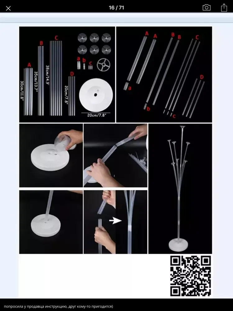 немного расстроена. пришел некомплект. заказывала 2 штуки. не положили деталь которая держит палки к которым крепятся шары. вернули 200₽.очень жаль. праздник испорчен. где искать теперь эти крепления не знаю. не рекомендую здесь заказывать