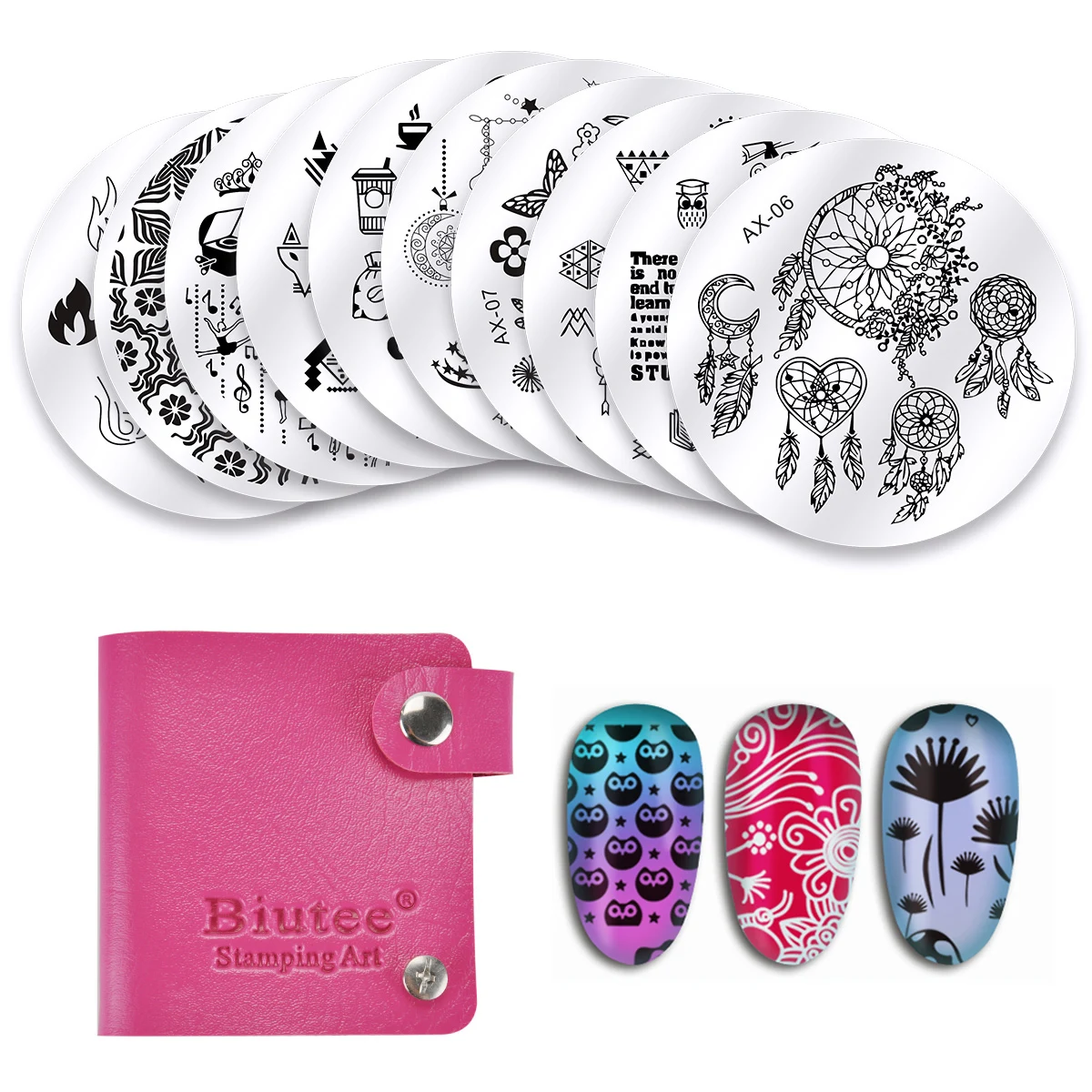 Набор пластин для стемпинга ногтей, 10 шт.компл., скребок, штамп с лаком для ногтей пластика, набор шаблонов для самостоятельного маникюра и нейл-арта, инструменты для ногтей