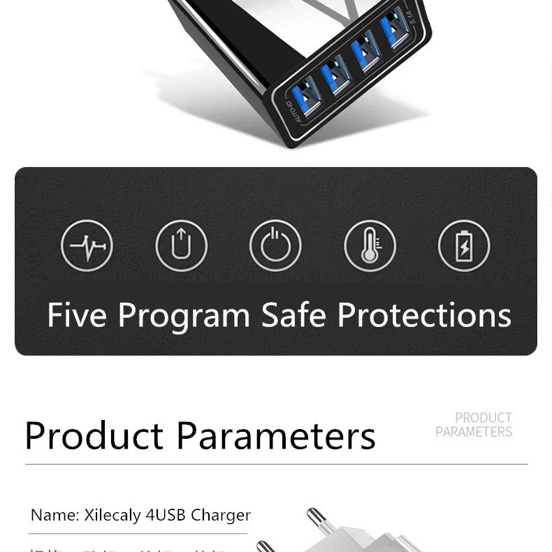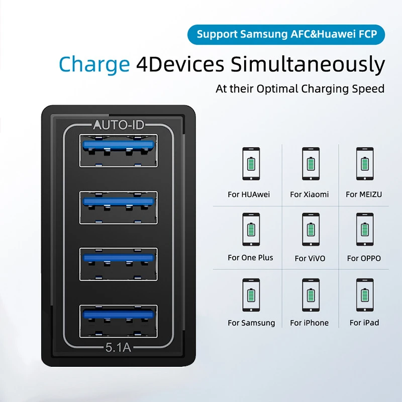 Зарядное устройство USB на 4 USB-порта, 5,1 А